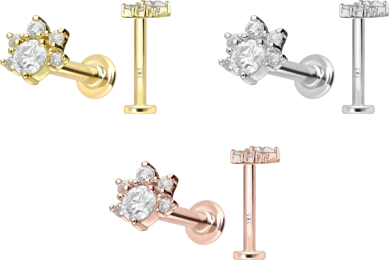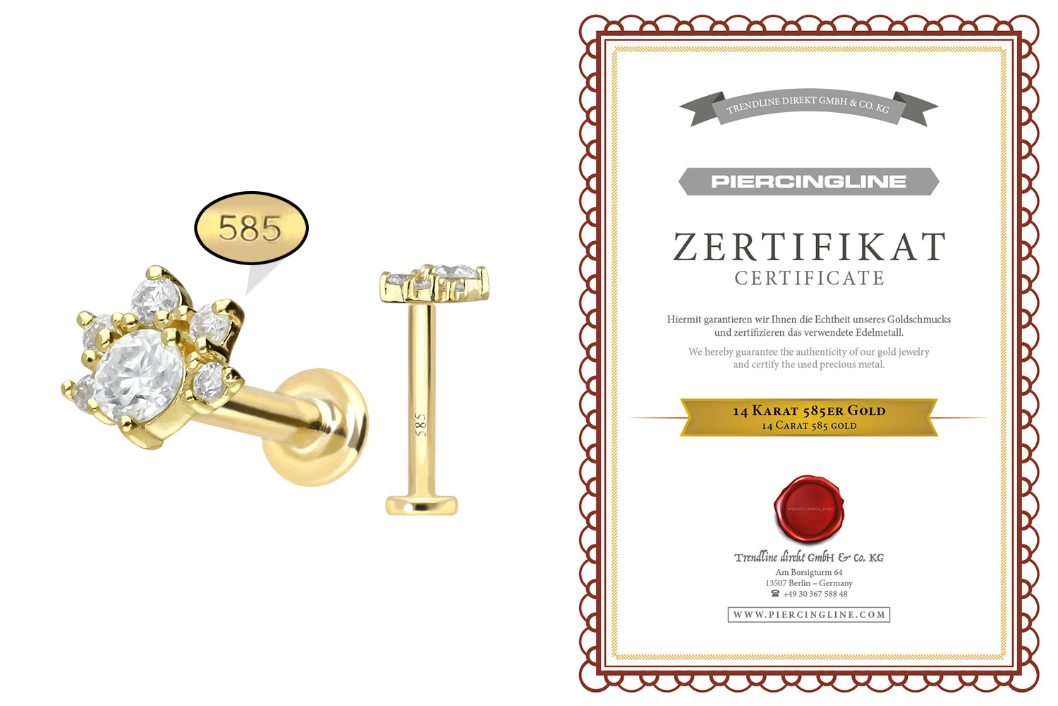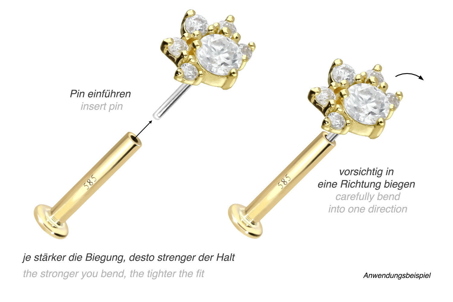 14 Karat Gold - Labret mit Push Fit Moissanit-Blume