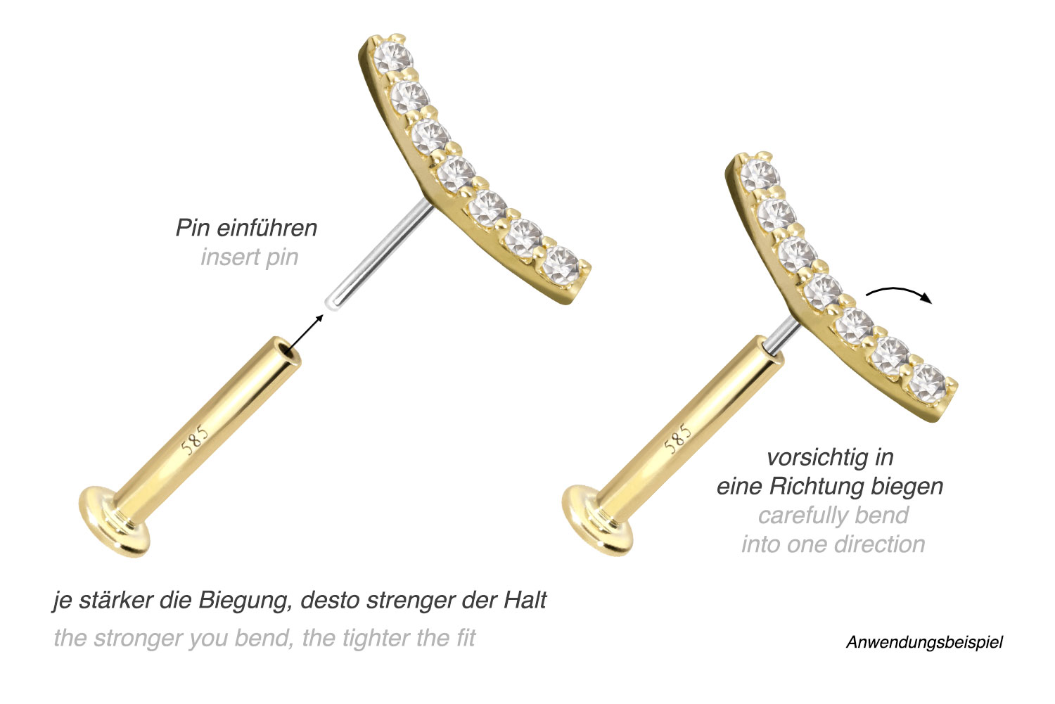 14 Karat Gold - Labret mit Push Fit Moissanit-Bogen