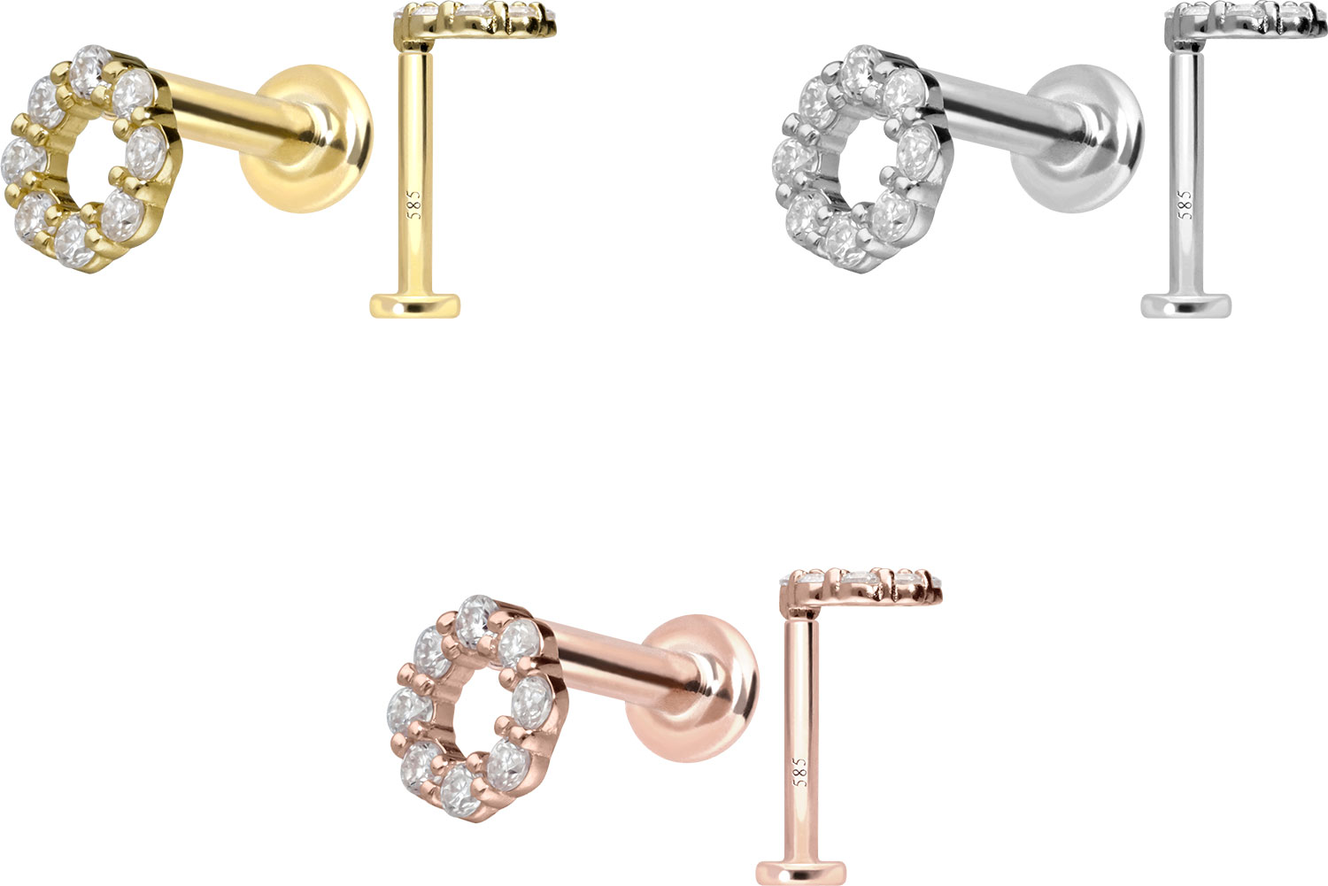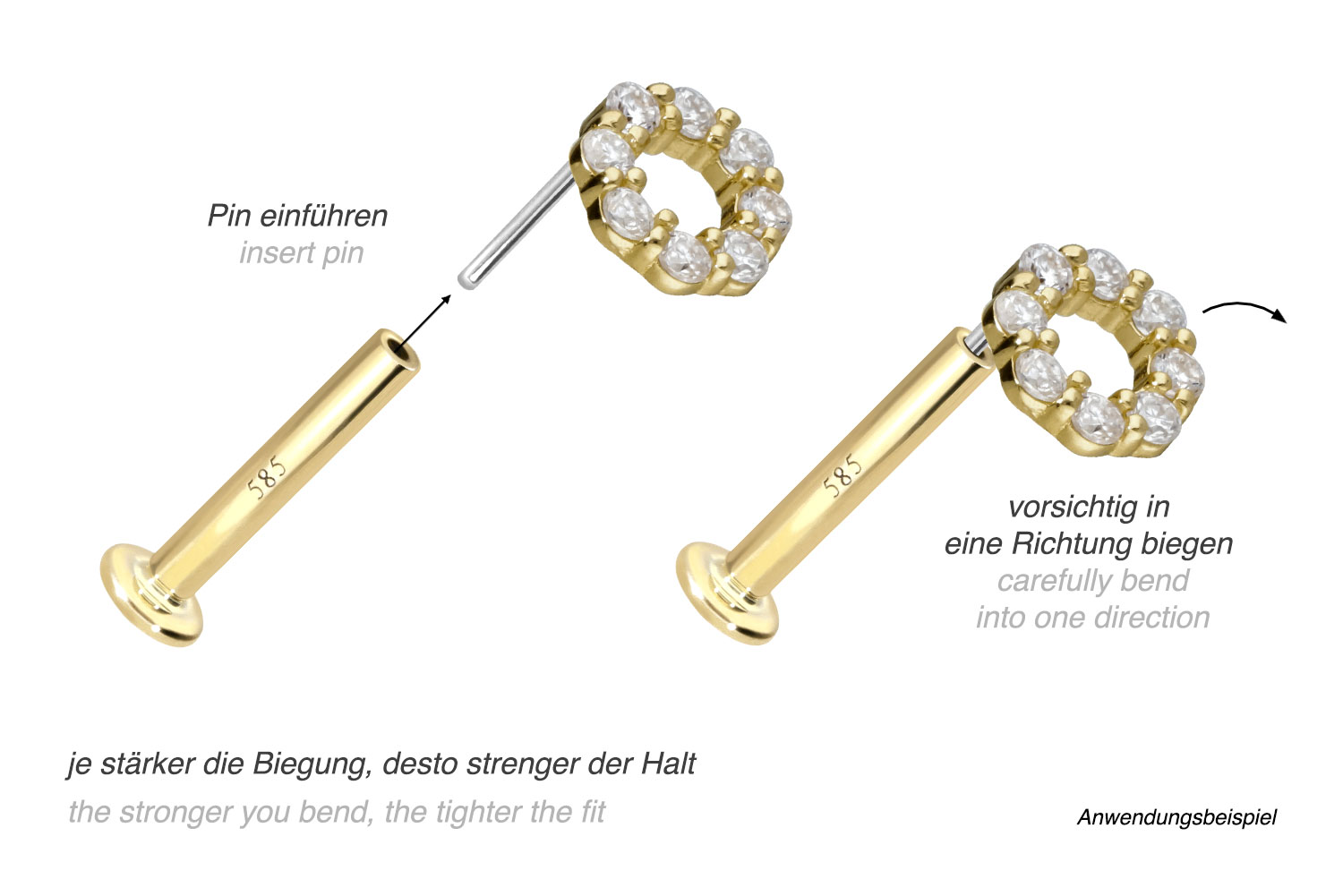 14 Karat Gold - Labret mit Push Fit Moissanit-Kreis