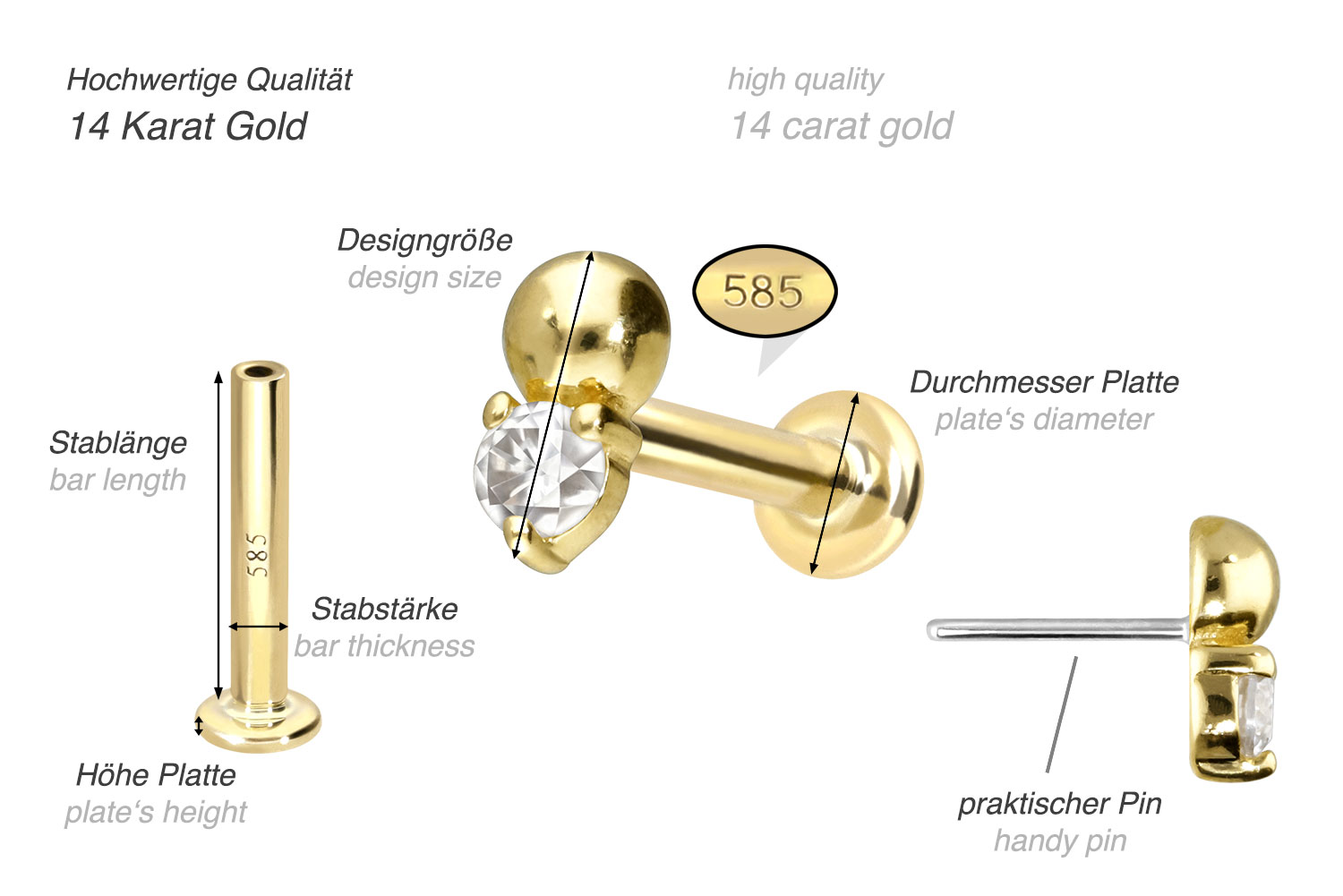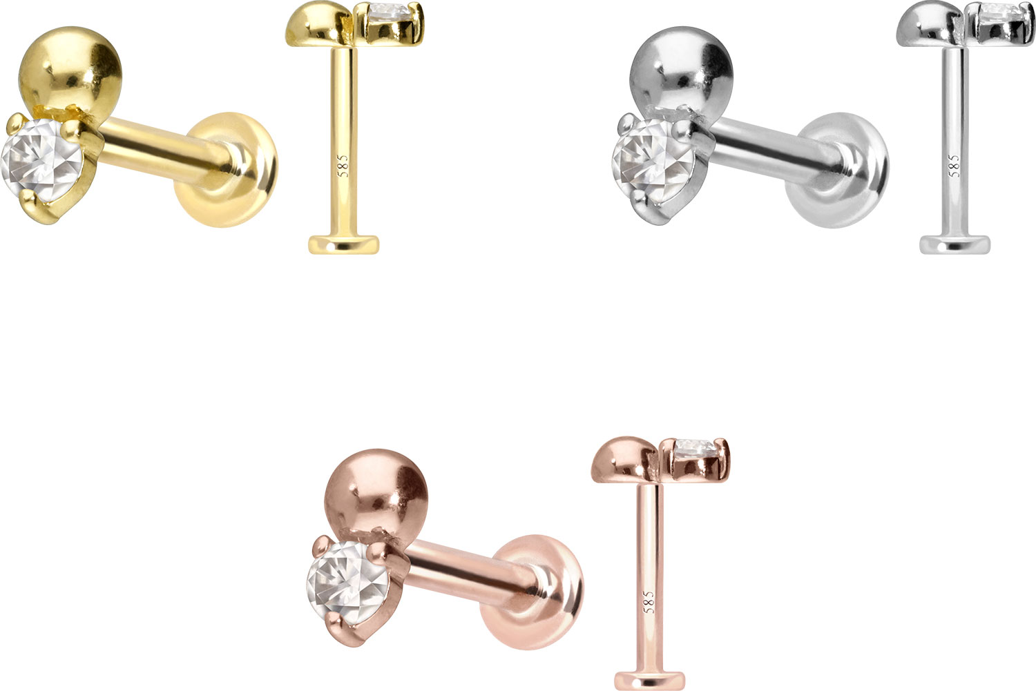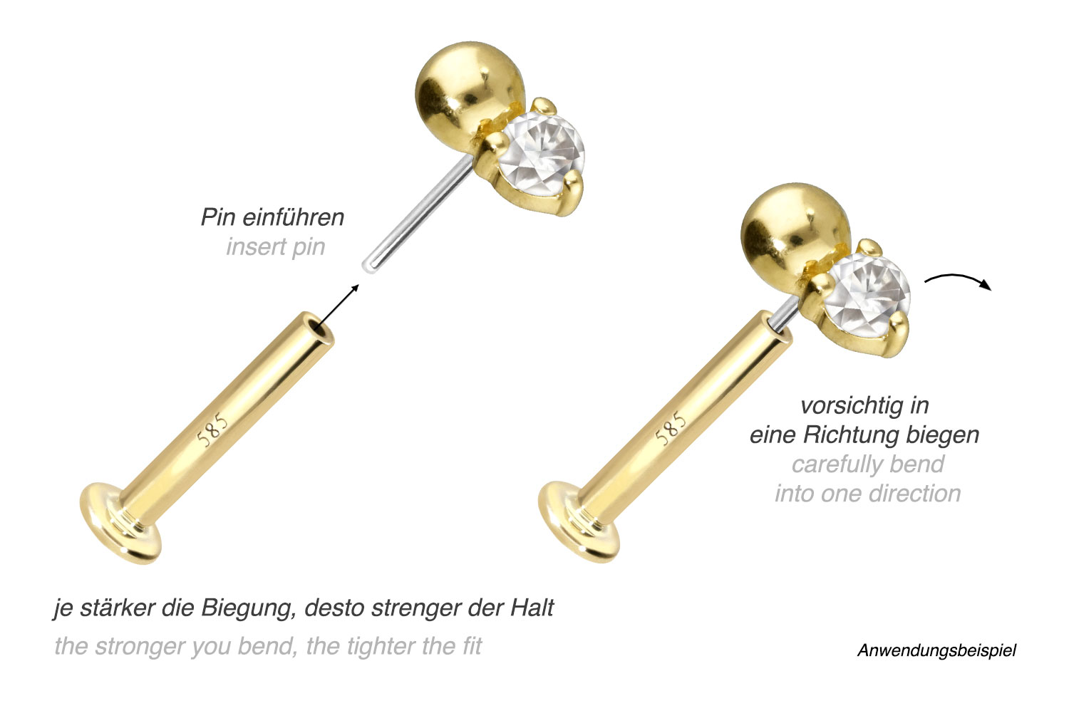 14 Karat Gold - Labret mit Push Fit Moissanit + Kugel