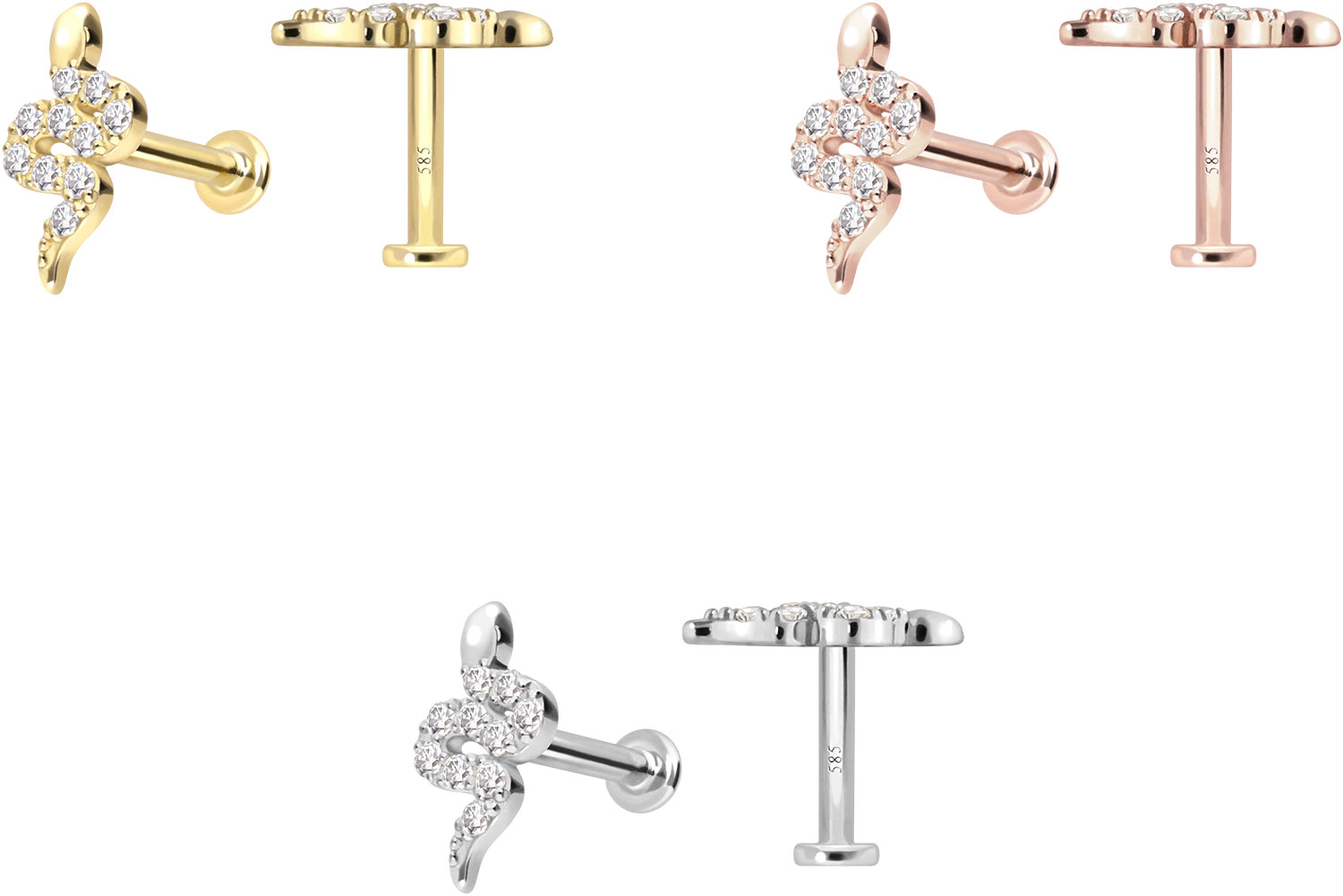 14 Karat Gold - Labret mit Push Fit Moissanit-Schlange