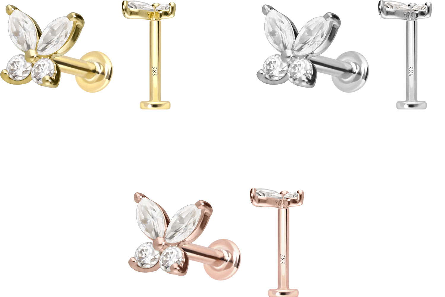14 Karat Gold - Labret mit Push Fit Moissanit-Schmetterling