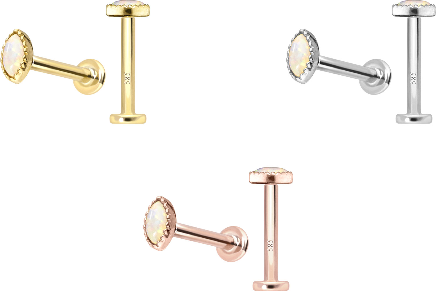 Material: 14 Karat (585er) Gelbgold / Roségold / Weißgold (rhodiniert) / synthetischer Opal / Titan (Grad 23)