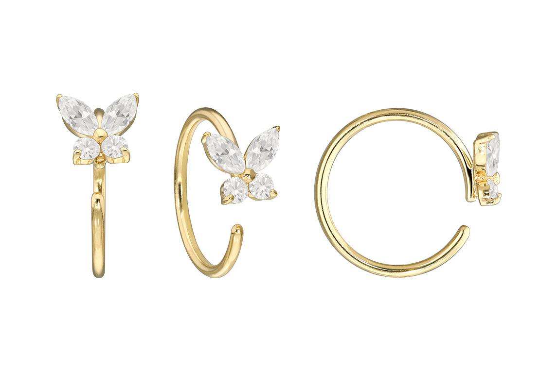 14 Karat Gold - Nasenring Moissanit-Schmetterling- biegbar