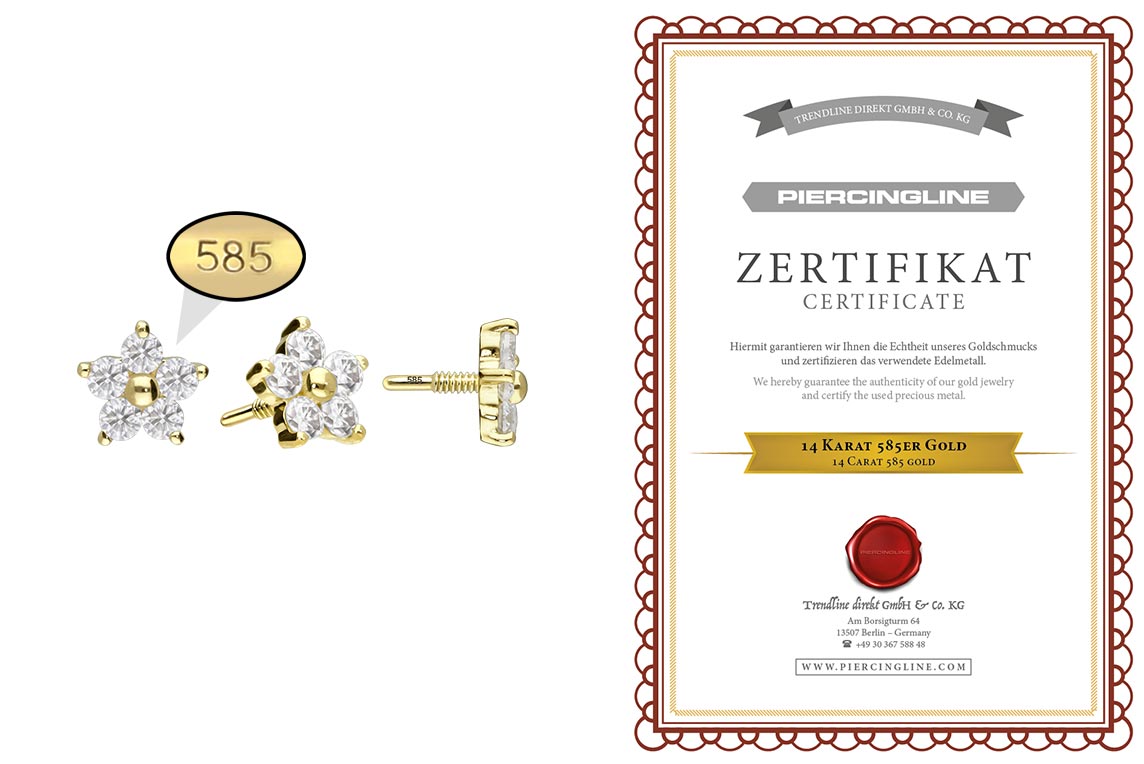 Dieser zeitlos schöne Schraubaufsatz in Form einer Blume besteht mit Ausnahme der Moissanite vollständig aus hochwertigem 14 Karat (585er) Gold, das neben seiner exzellenten Qualität auch mit Eigenschaften wie guter Hautverträglichkeit und hoher Beständigkeit zu begeistern weiß. Farblich ist er in Gelbgold, Roségold und rhodiniertem Weißgold erhältlich. Der Moissanit verleiht dem Schmuckstück seinen außergewöhnlichen, diamantenähnlichen Glanz. Jeder Einzelne unserer Artikel aus 14-karätigem Gold wird mit viel Liebe zum Detail in Handarbeit gefertigt und ist somit ein Unikat. Das 0,8 mm starke Außengewinde des Aufsatzes ist mit all unseren 14 Karat (585er) Gold Produkten, die über ein solches Innengewinde verfügen, kompatibel, sodass sich vielfältige Kombinationsmöglichkeiten ergeben.