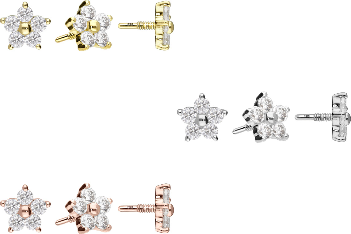 14 Karat Gold - Schraubaufsatz mit Außengewinde Moissanit-Blume