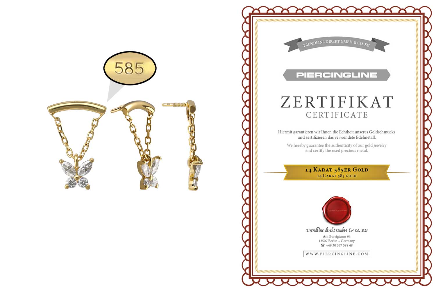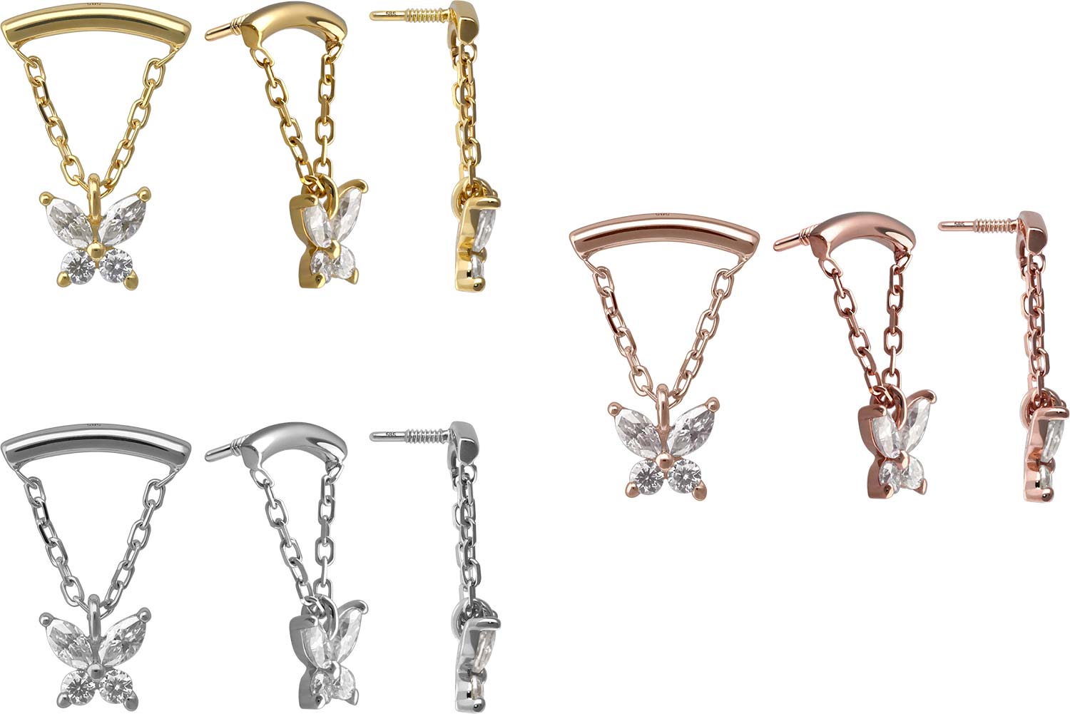 14 Karat Gold Schraubaufsatz mit Außengewinde MOISSANIT-SCHMETTERLING + BOGEN + KETTE