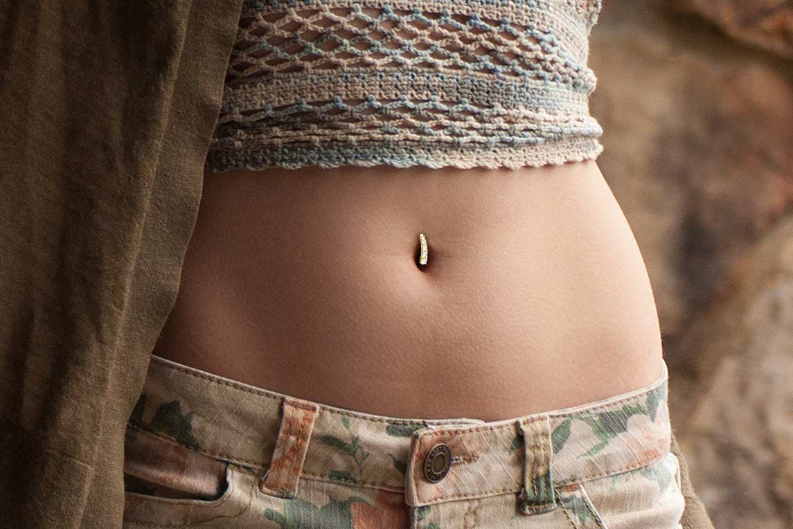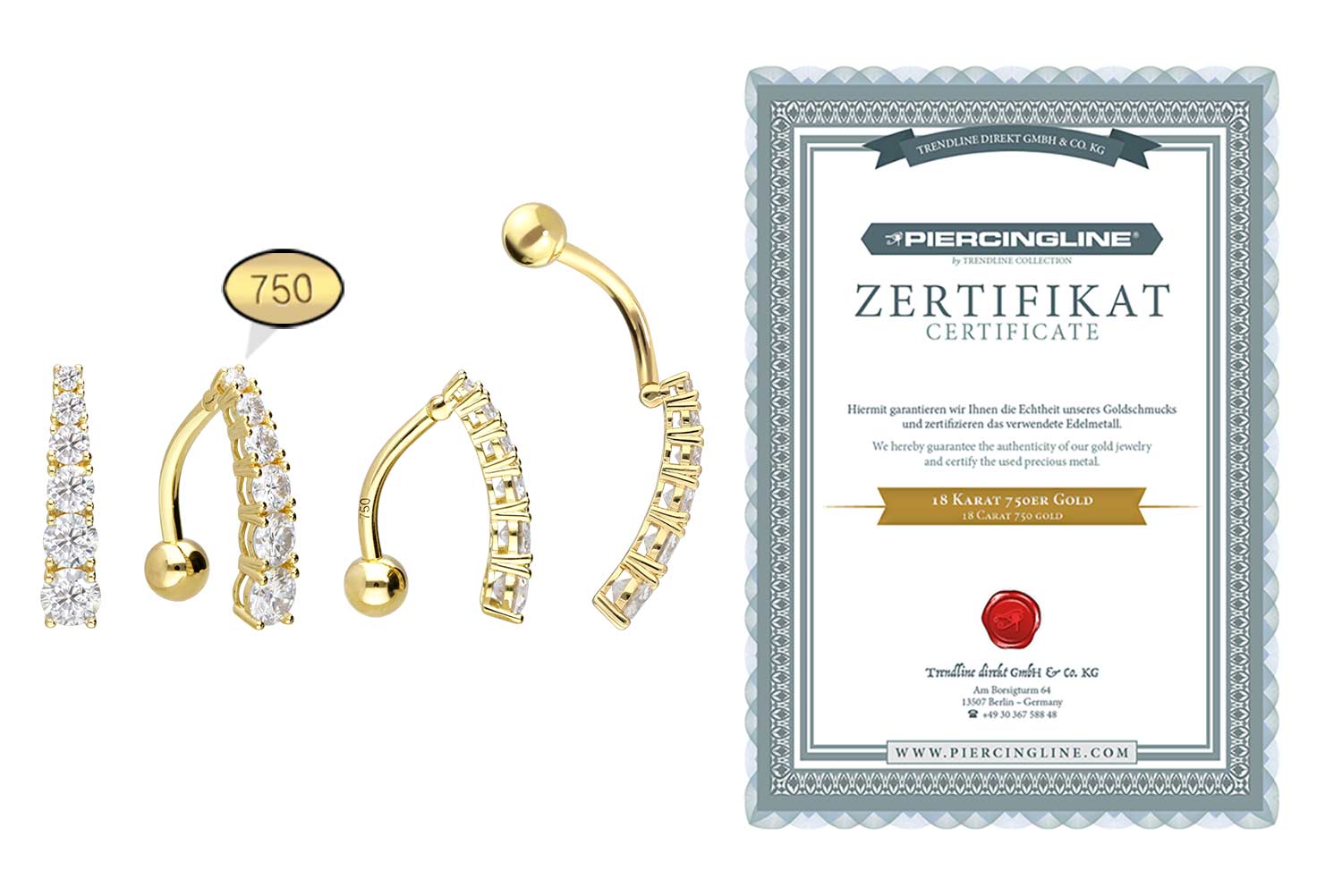 18 Karat Gold - Bauchnabelpiercing Moissanit-Banner