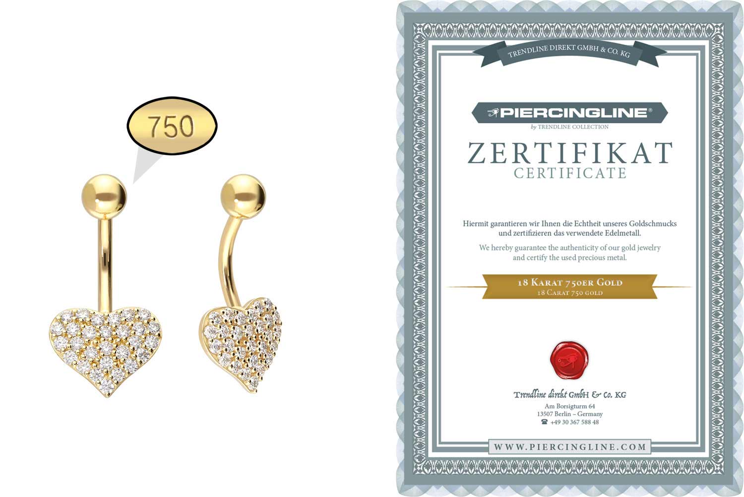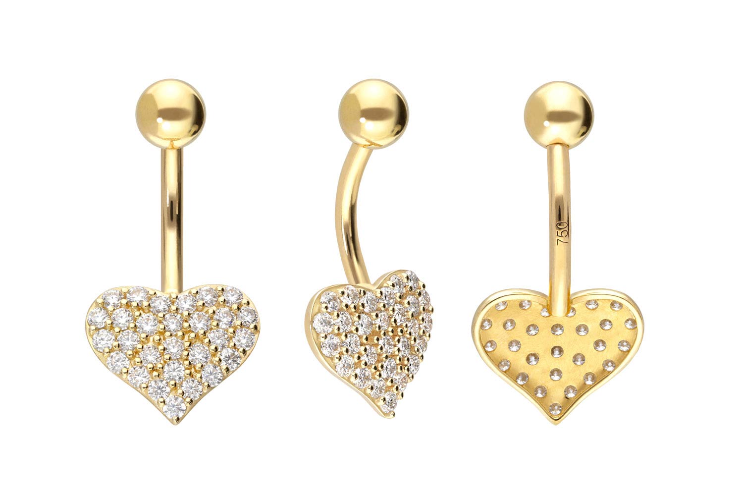 18 Karat Gold - Bauchnabelpiercing Moissanit-Herz