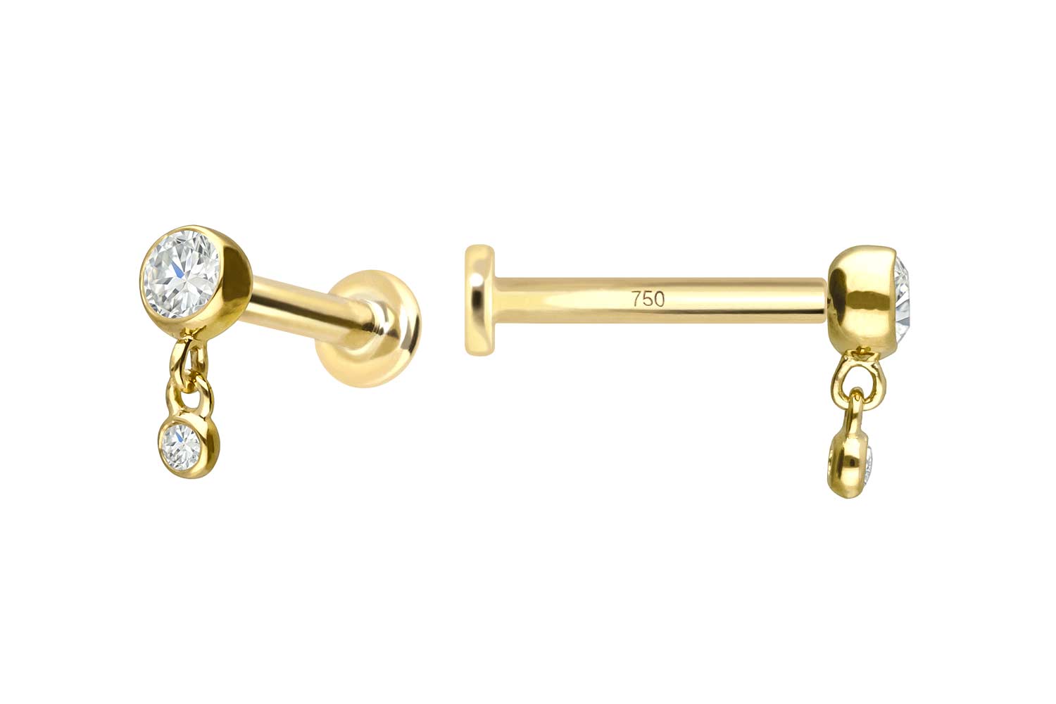 18 Karat Gold - Labret mit Innengewinde 2 Diamanten