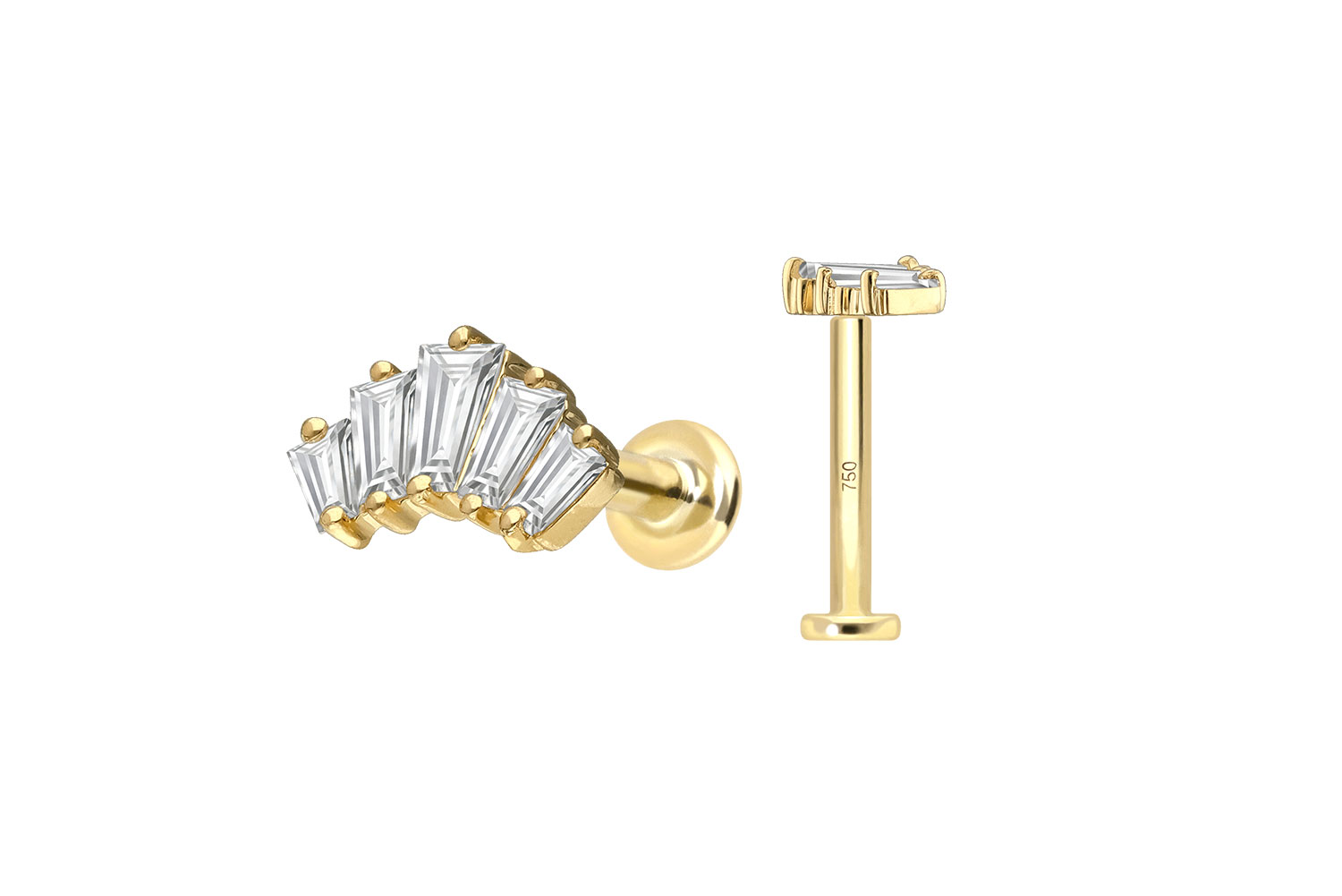 18 Karat Gold Labret mit Innengewinde 5 DIAMANT-RECHTECKE