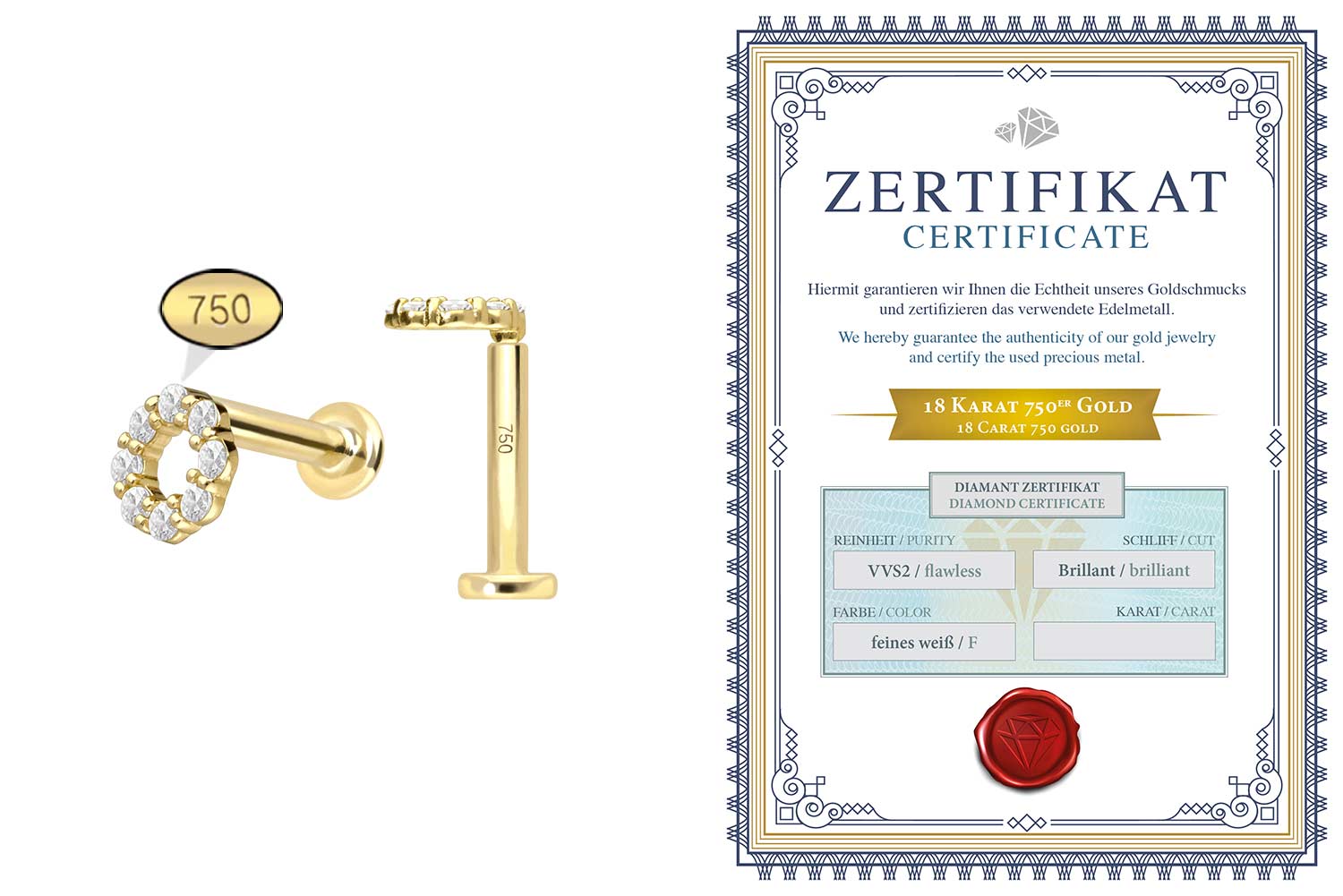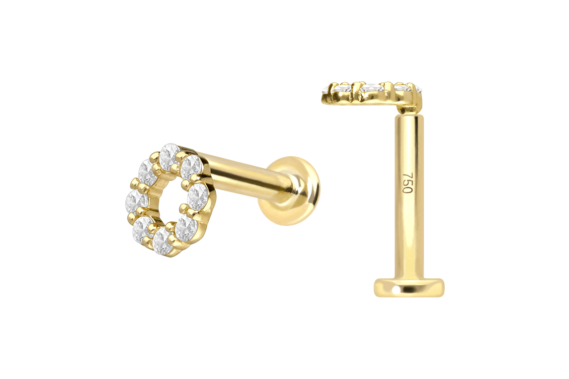 18 Karat Gold - Labret mit Innengewinde Diamant-Kreis