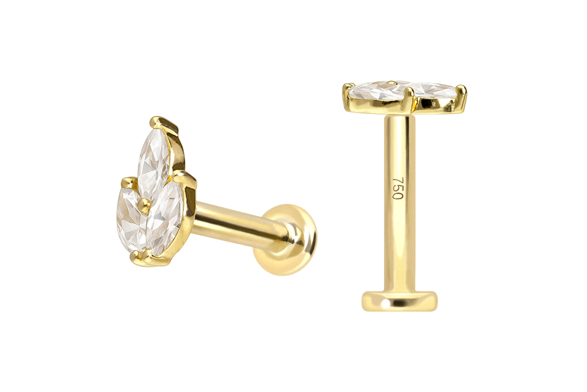 Dieses Labret ist mit Ausnahme der Diamanten vollständig aus hochwertigem 18 Karat (750er) Gelbgold gefertigt, das neben seiner exzellenten Qualität auch mit Eigenschaften wie guter Hautverträglichkeit und hoher Beständigkeit zu begeistern weiß. Das Labret verfügt über einen zeitlos schönen Schraubaufsatz mit Außengewinde in Form einer Lotusblüte, hat