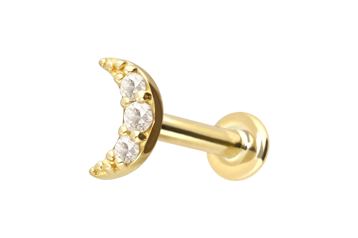 18 Karat Gold - Labret mit Innengewinde Diamant-Mond