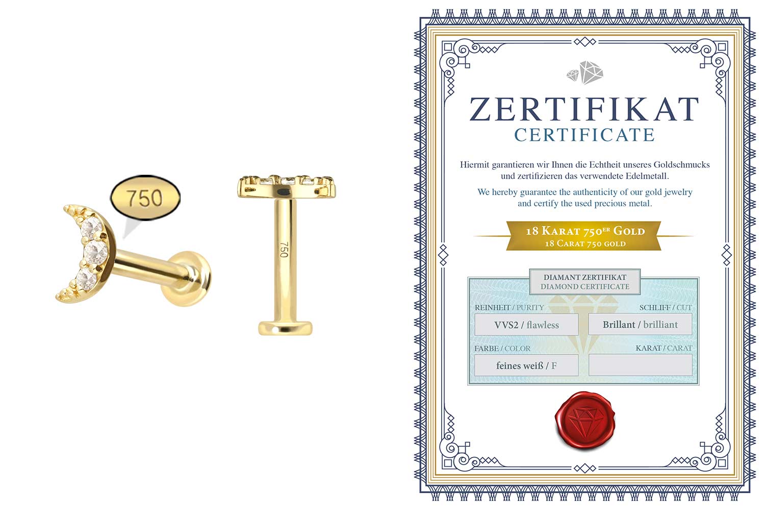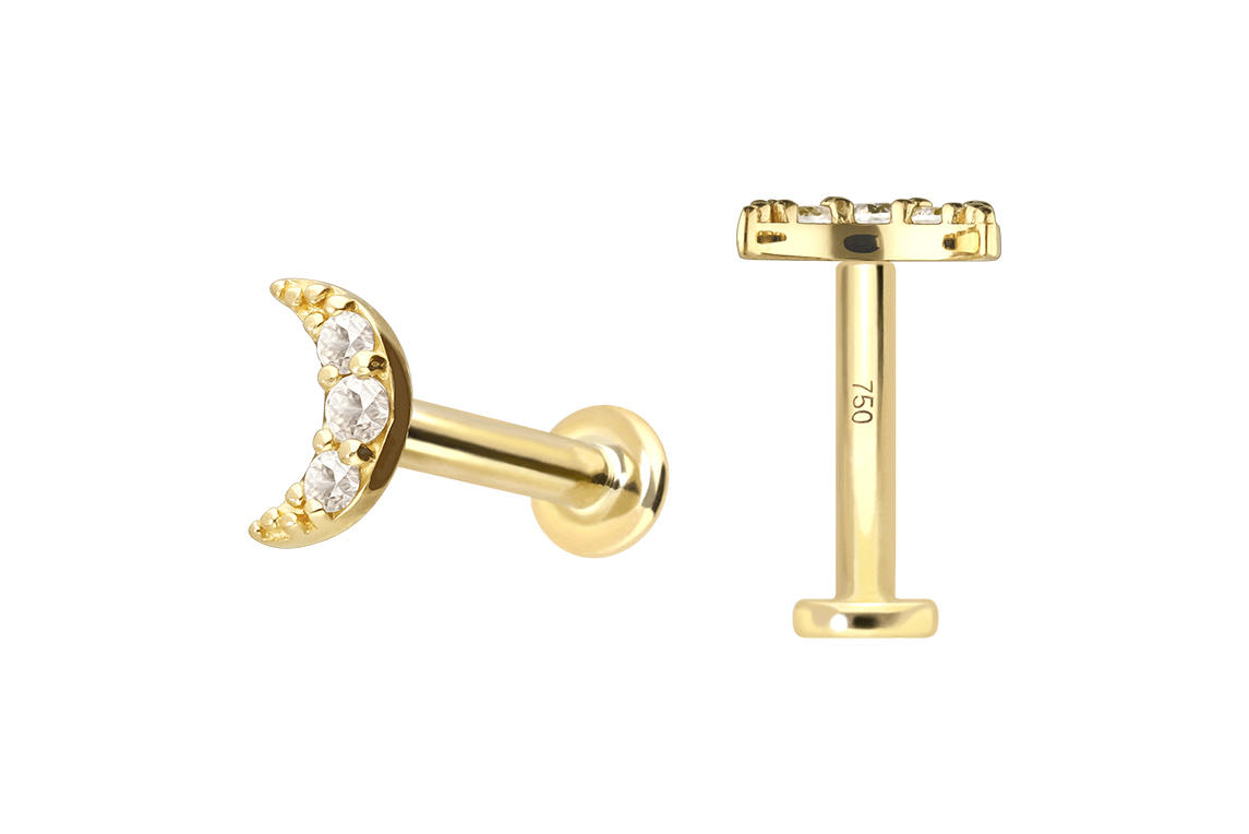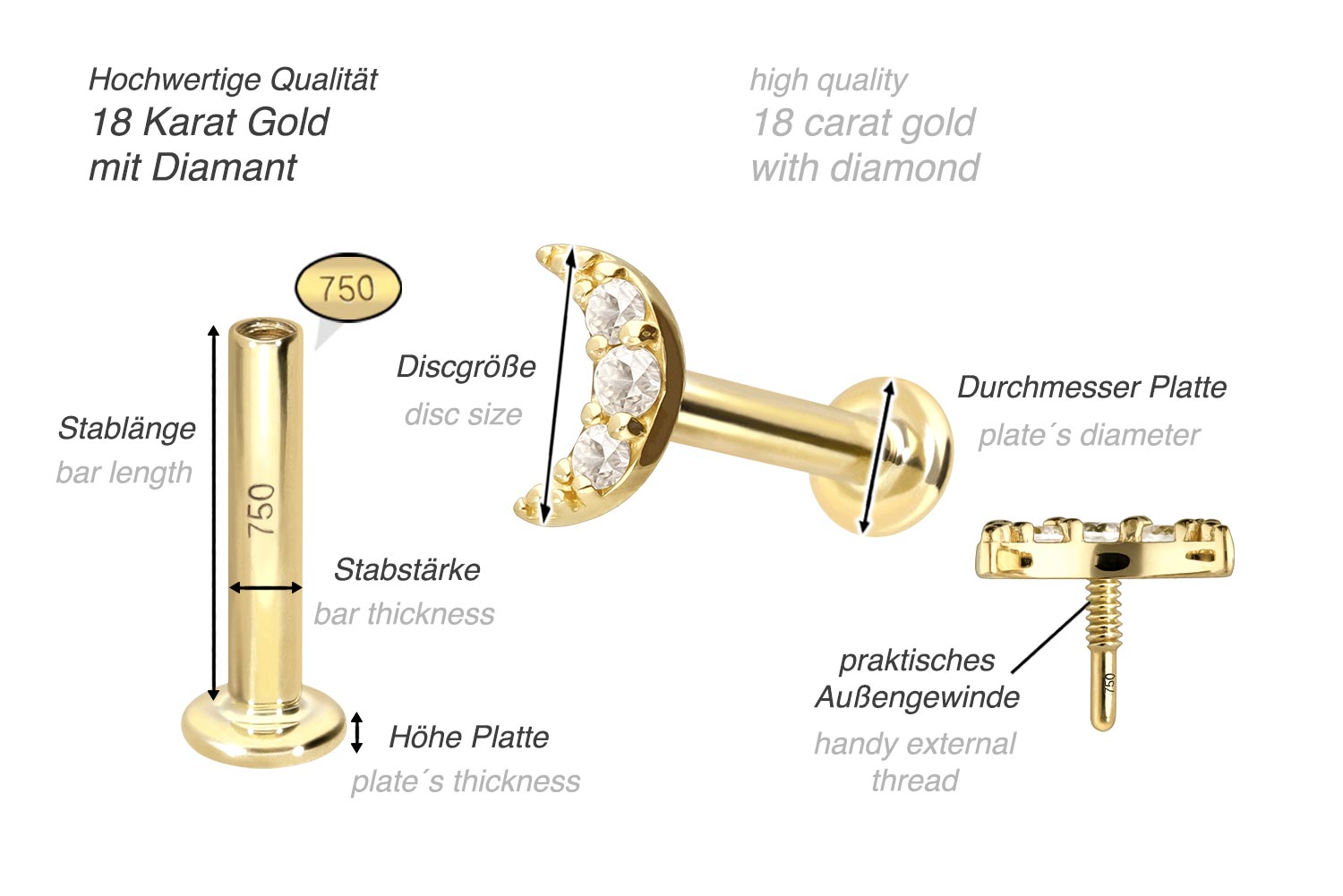 18 Karat Gold - Labret mit Innengewinde Diamant-Mond