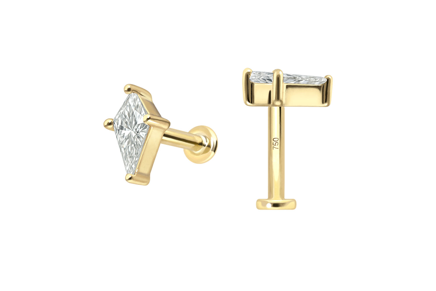 18 Karat Gold - Labret mit Innengewinde Diamant-Schild