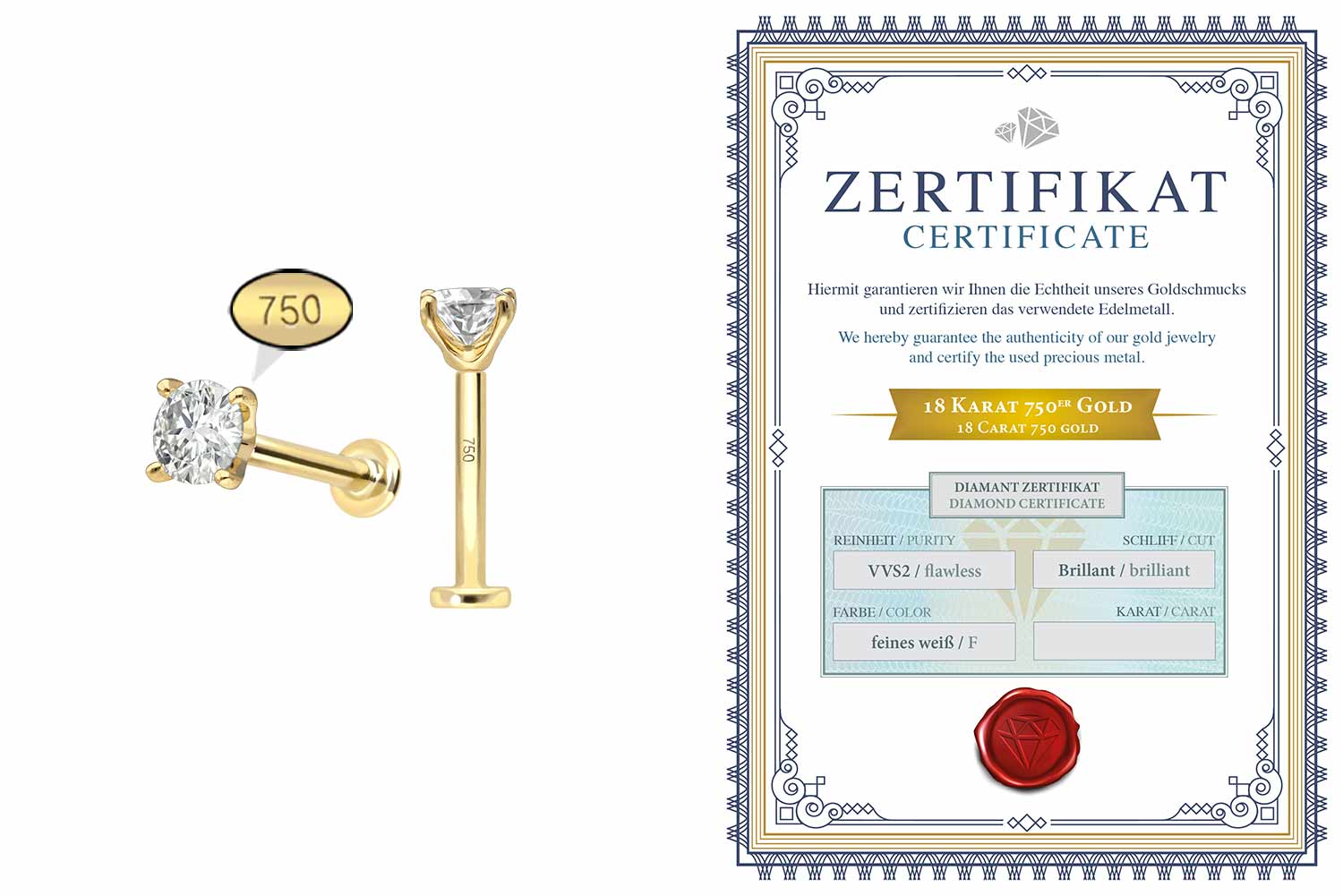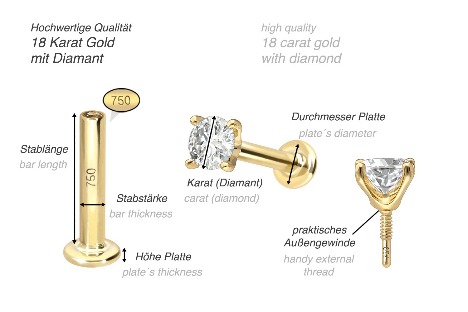 18 Karat Gold Labret mit Innengewinde DIAMANT