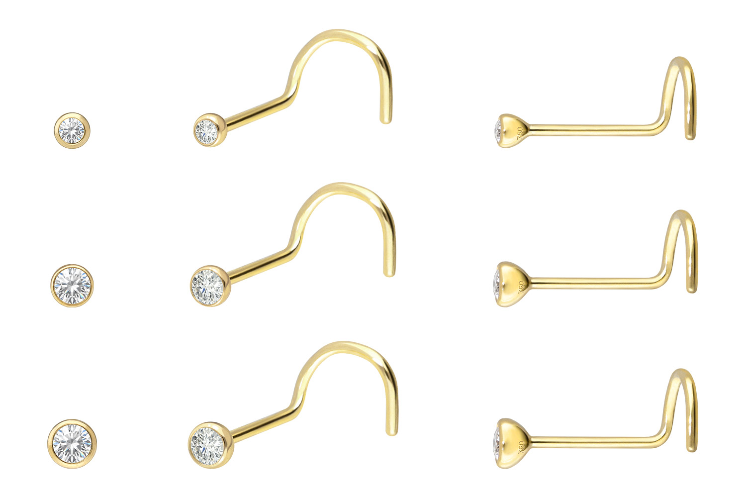 Diamantgröße: 1,8 / 2,2 / 2,4 mm18 Karat Gold - Nasenstecker Spirale Diamant
