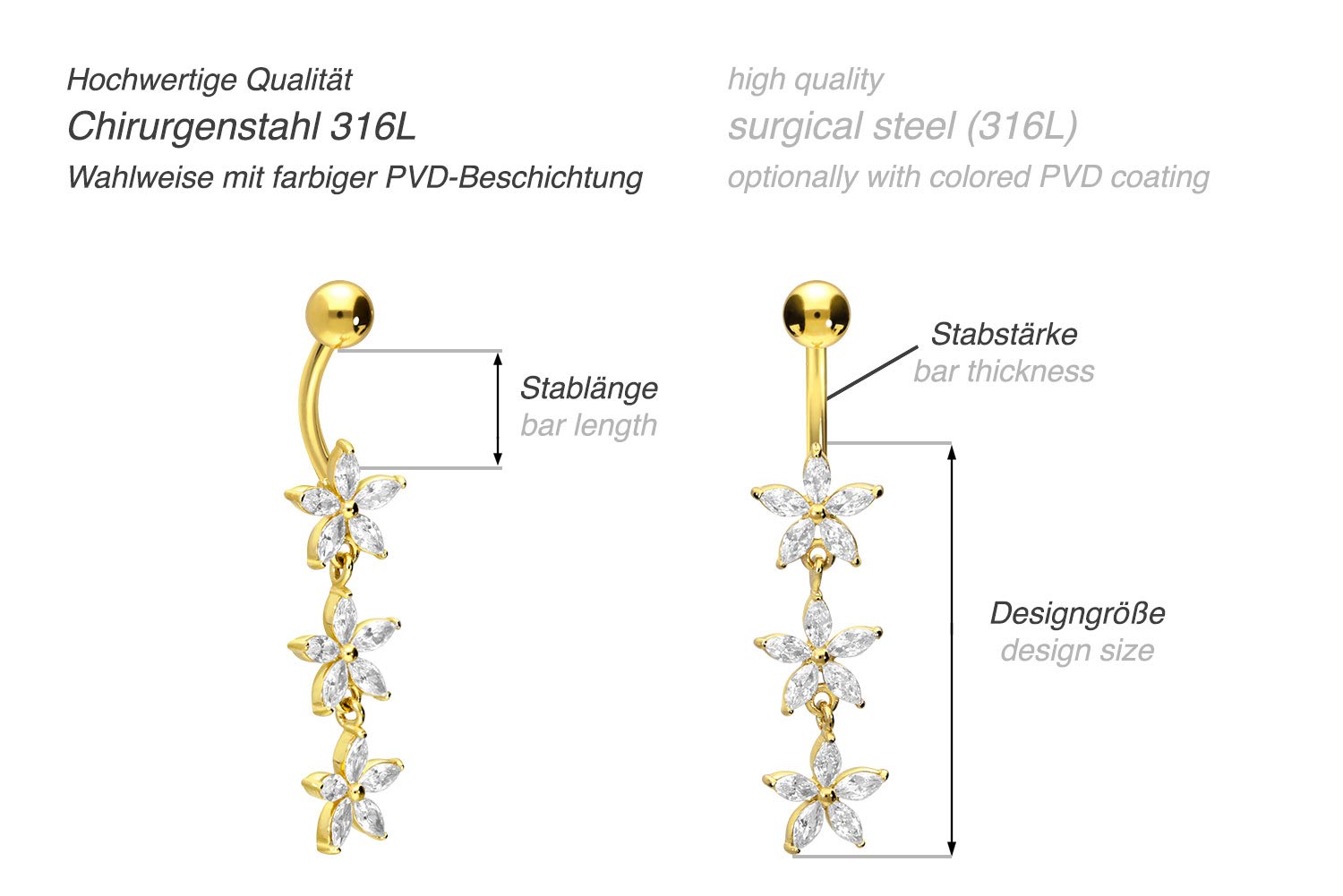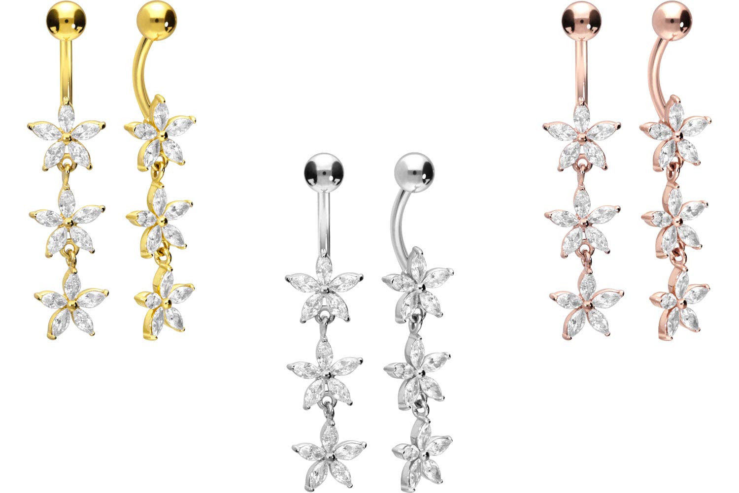 Chirurgenstahl 316L - Bauchnabelpiercing 3 kleine Kristallblumen