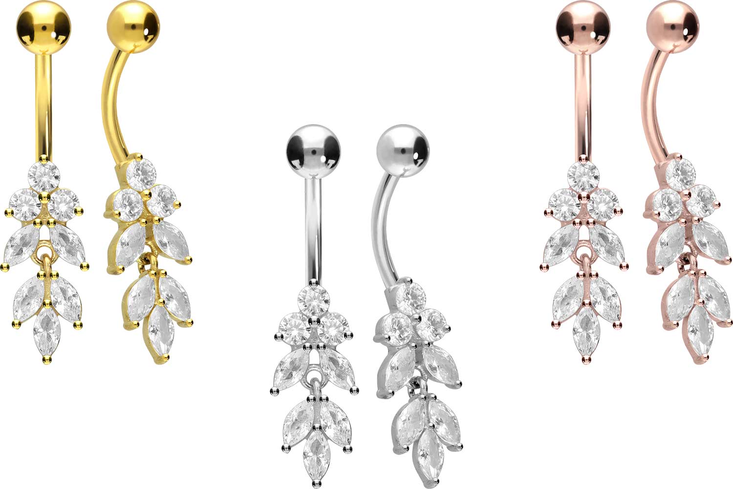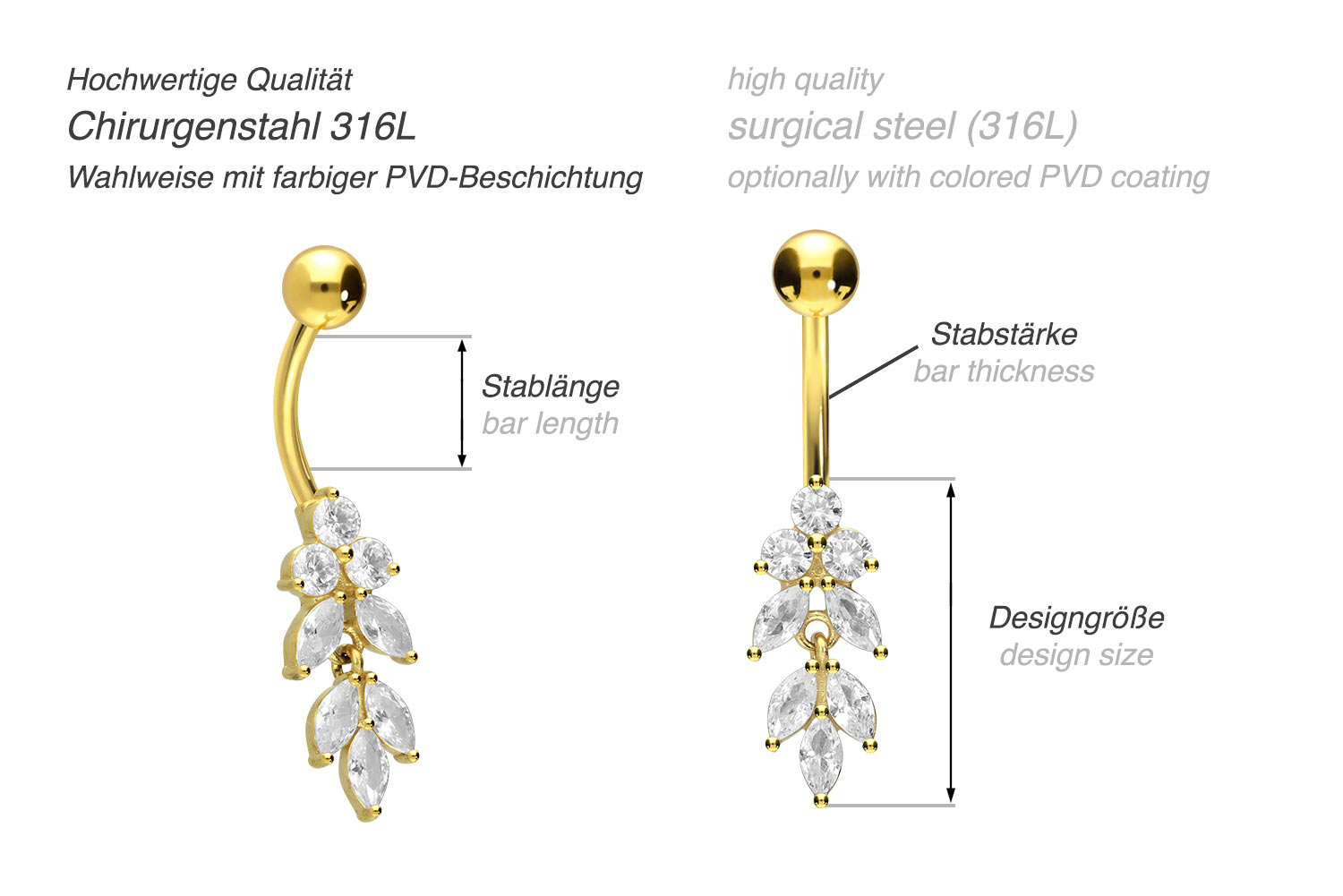 Chirurgenstahl 316L - Bauchnabelpiercing Kristallblätter