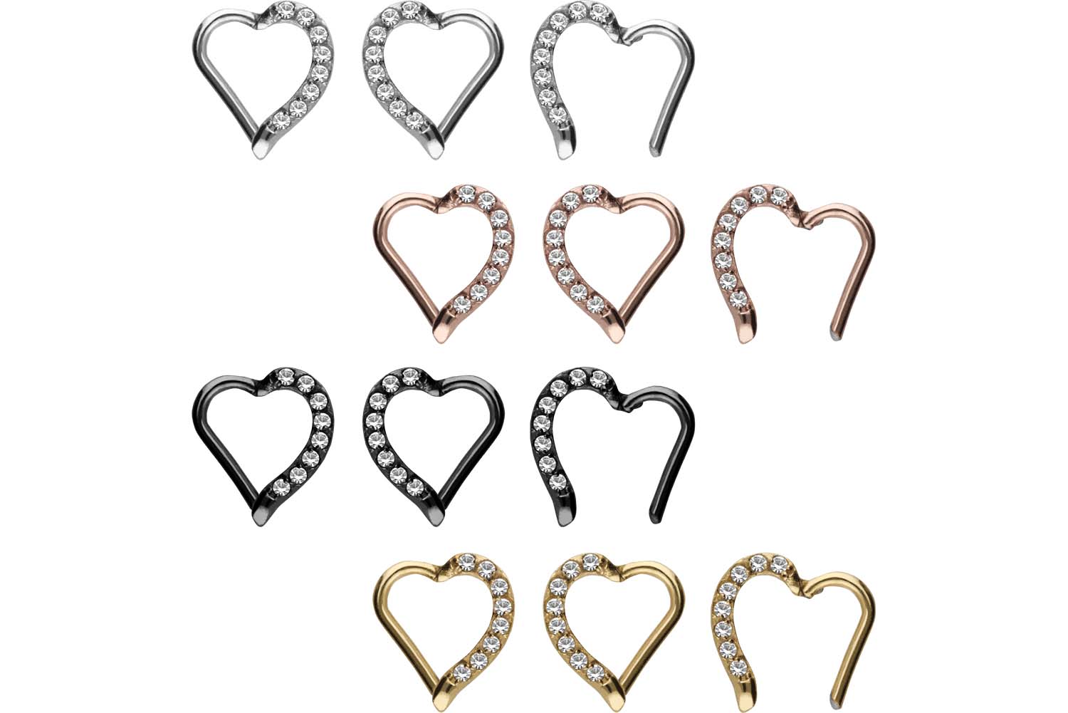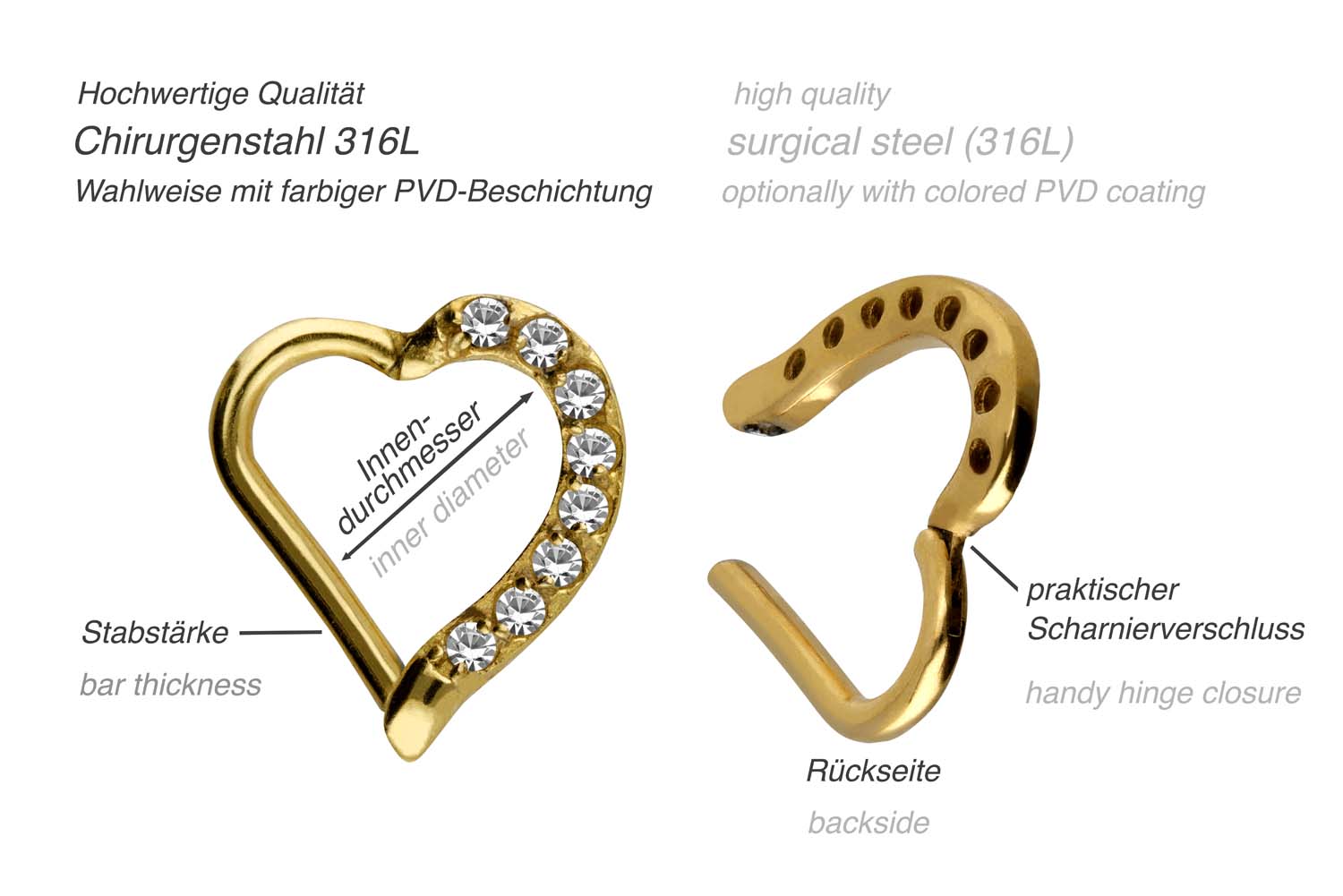 Chirurgenstahl 316L - Clicker Herz + eingefasste Kristalle