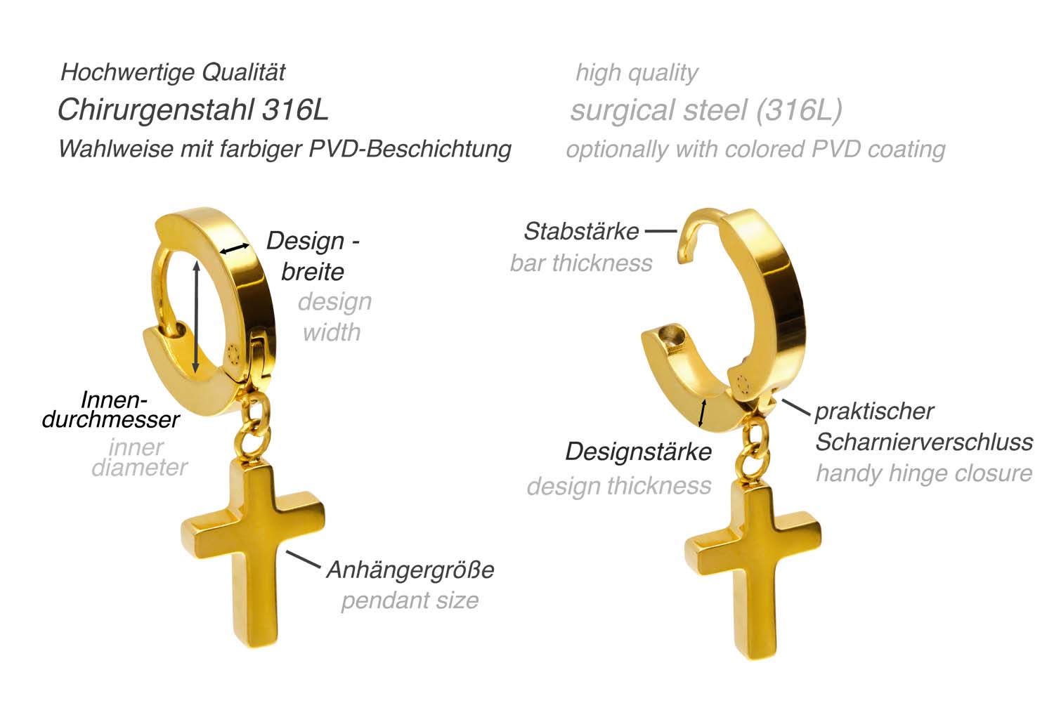 Chirurgenstahl 316L - Creolen bewegliches Kreuz