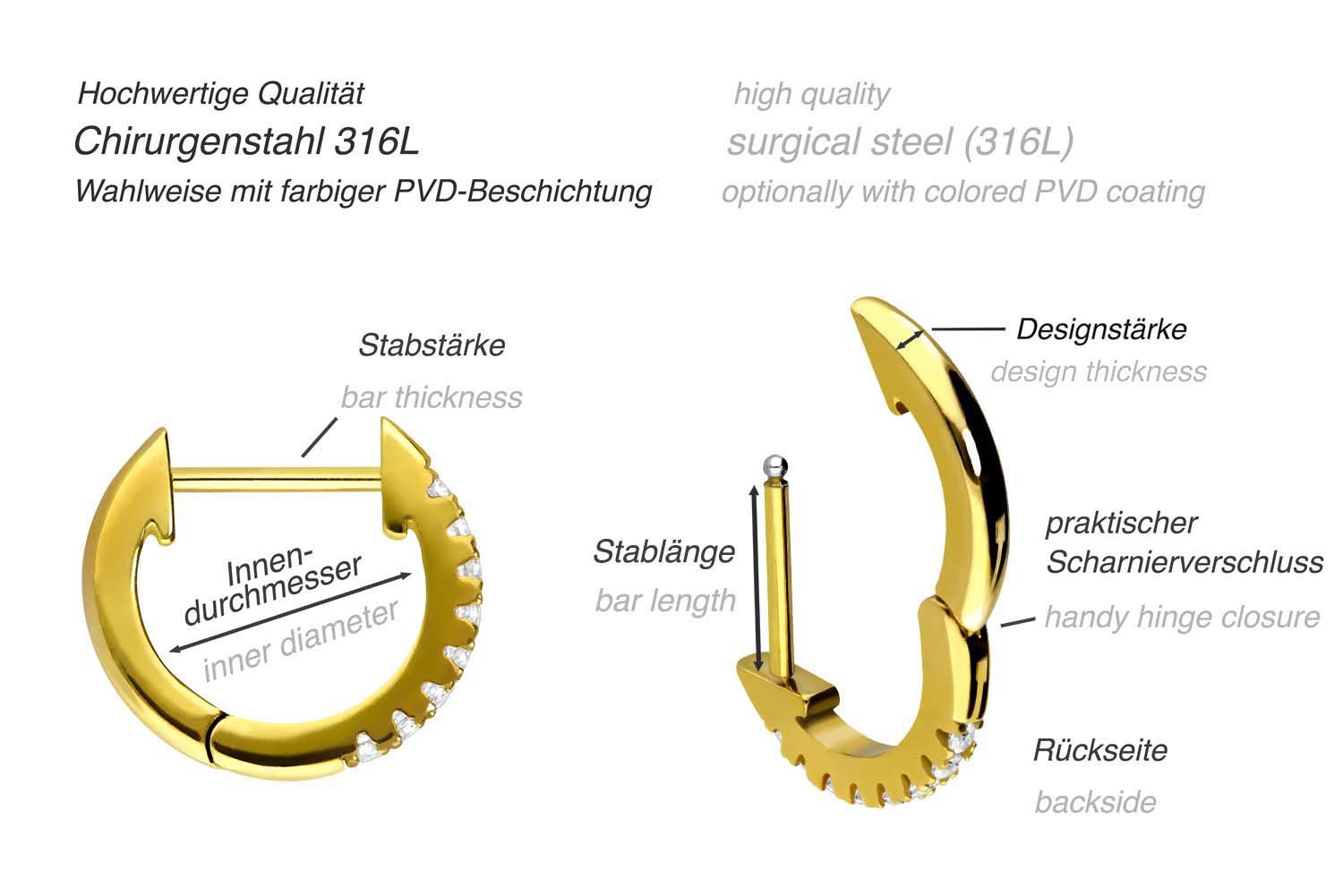 Chirurgenstahl 316L - Ohrclicker Creolen eingefasste Kristalle