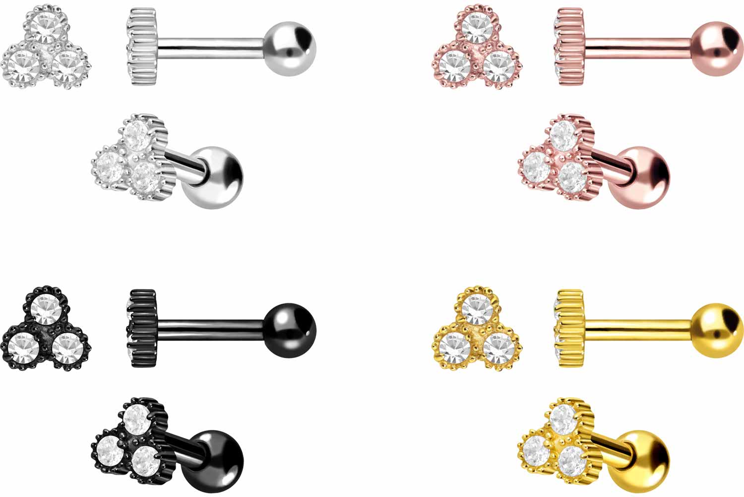 Chirurgenstahl 316L - Ohrpiercing 3 Kristalle