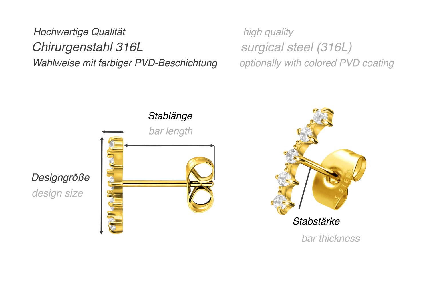 Diese zeitlos schönen Ohrstecker bestehen aus hochwertigem Chirurgenstahl 316L, der sich unter anderem durch hohe