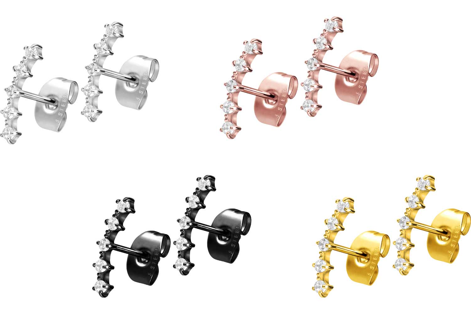 Chirurgenstahl 316L - Ohrstecker 5 eingefasste Kristalle