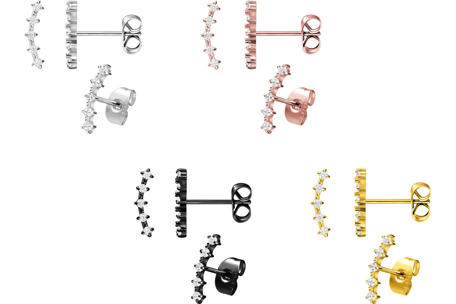 mit PVD-Beschichtung gewährleistet wird. Die 5 eingefassten Kristalle, die sich an den vorderen Enden der Stecker befinden, wirken besonders ansprechend. Darüber hinaus werden die Ohrstecker wie abgebildet paarweise geliefert.