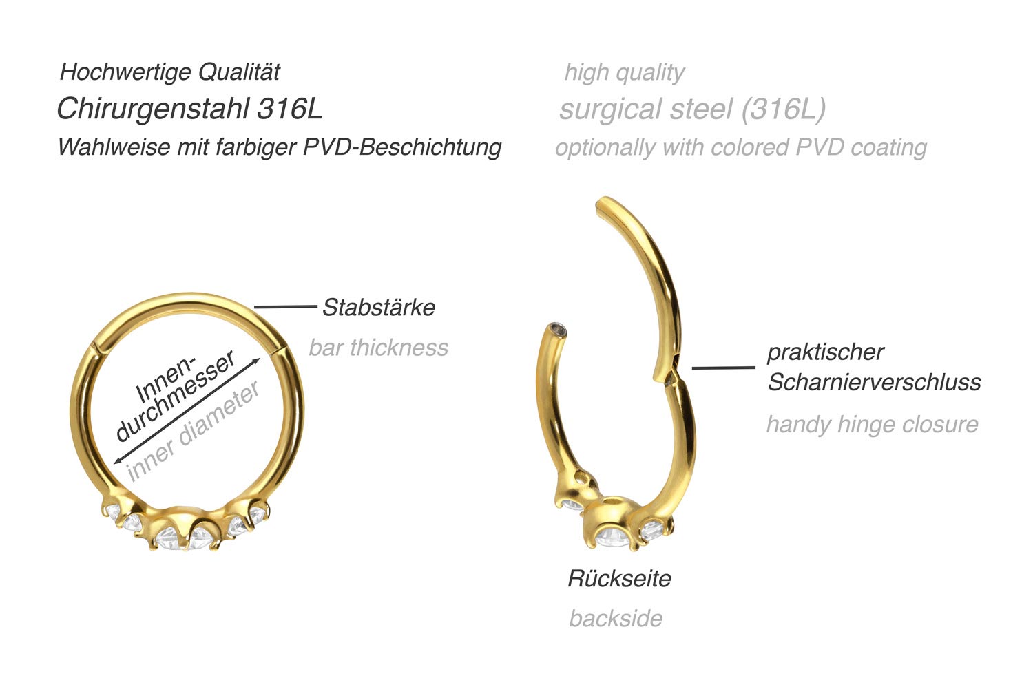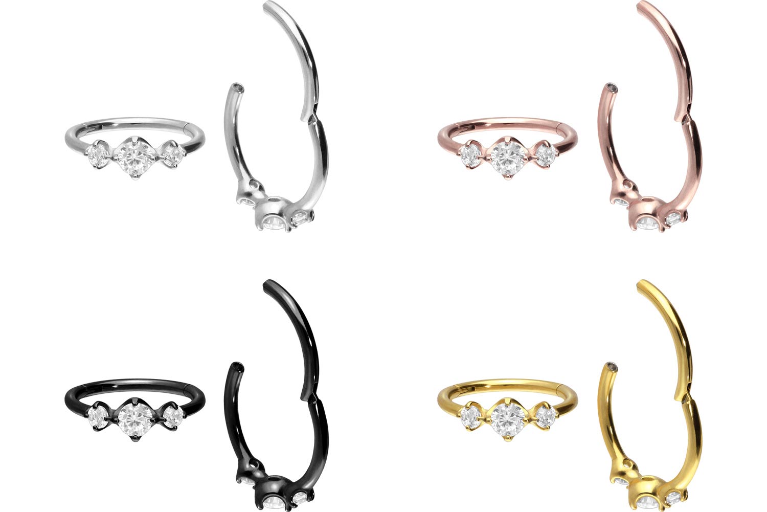 Chirurgenstahl Segmentring Clicker 3 EINGEFASSTE KRISTALLE