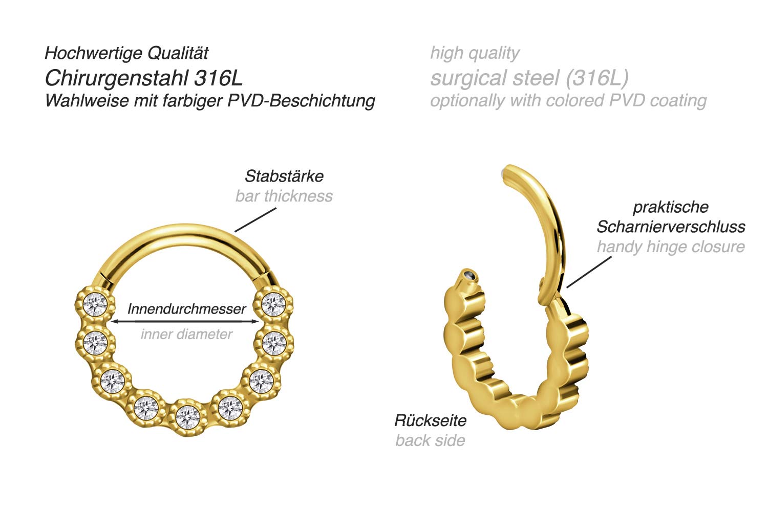 Chirurgenstahl Segmentring Clicker 9 KRISTALLE