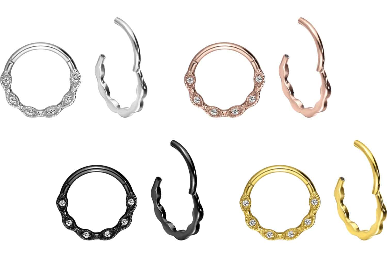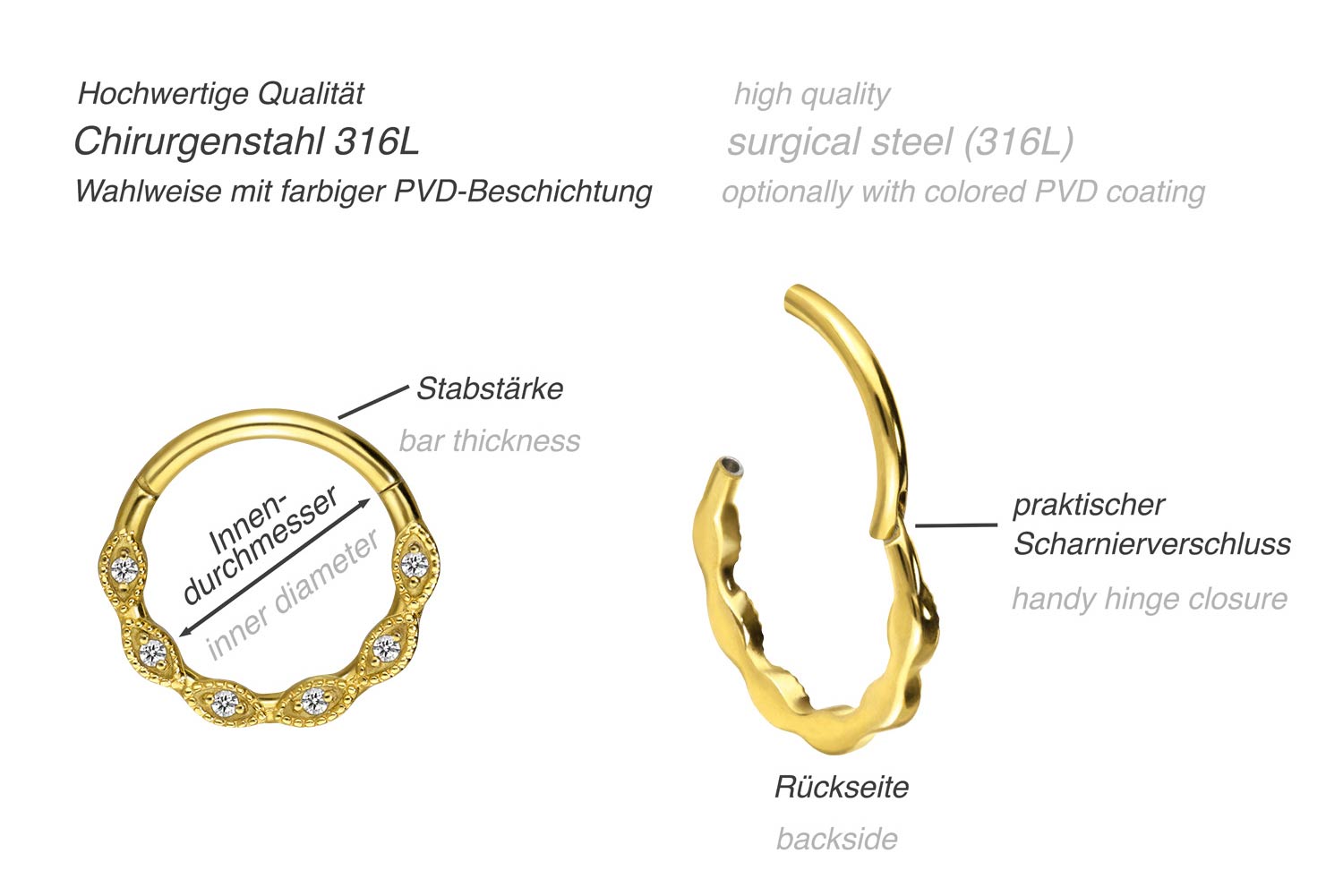 Chirurgenstahl Segmentring Clicker EINGEFASSTE KRISTALLE