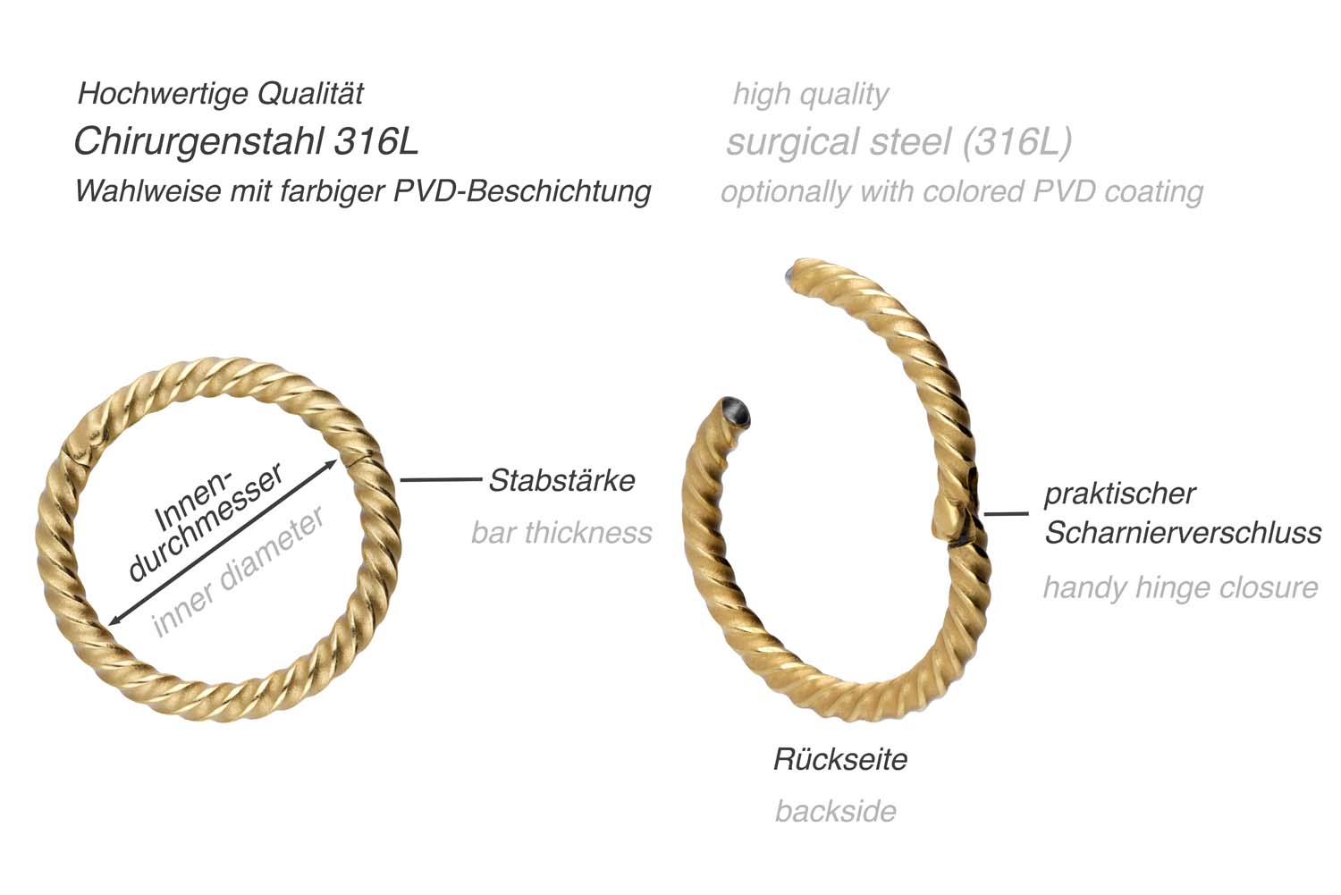 Chirurgenstahl Segmentring Clicker GEDREHT