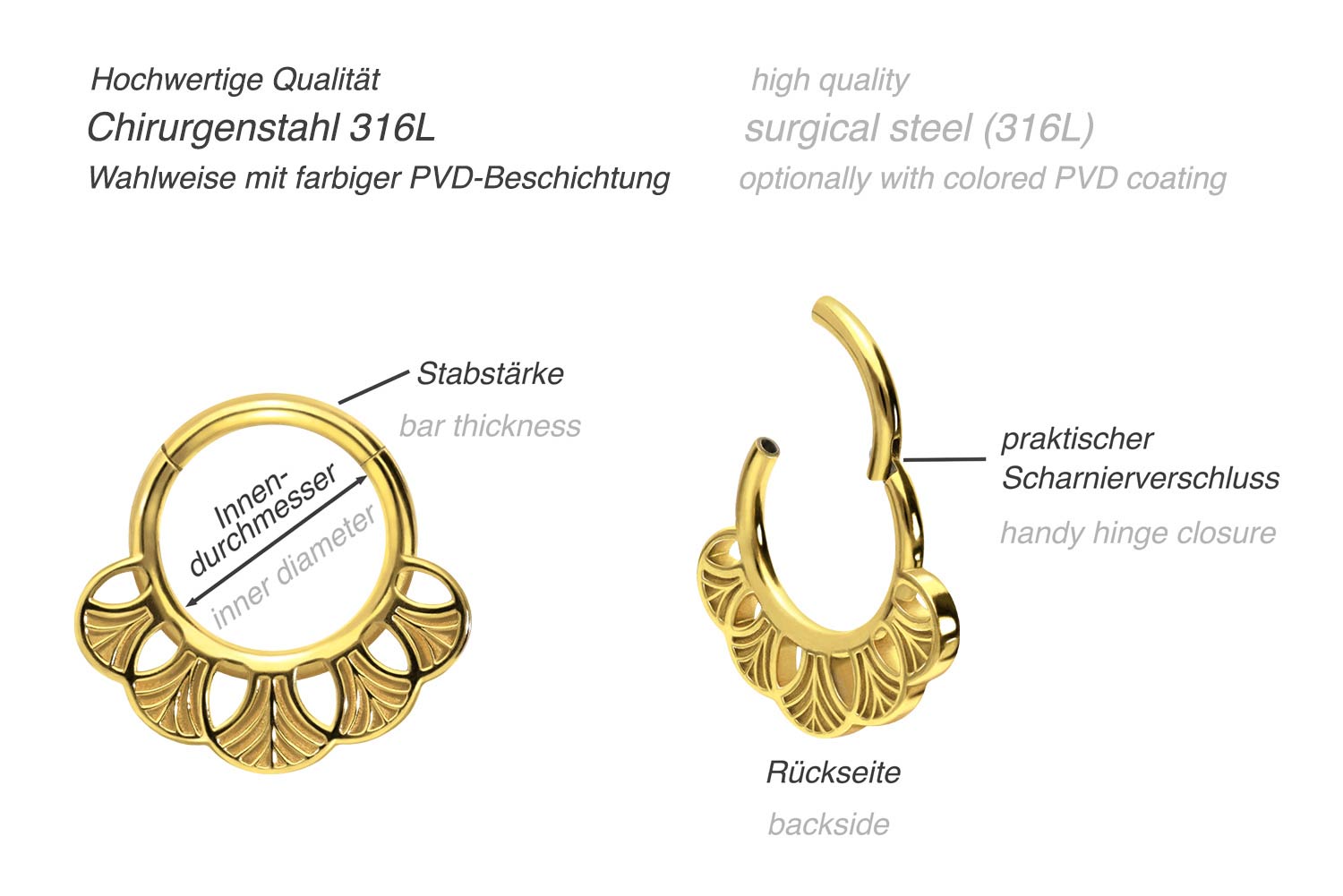 Chirurgenstahl Segmentring Clicker GINKGOBLÄTTER