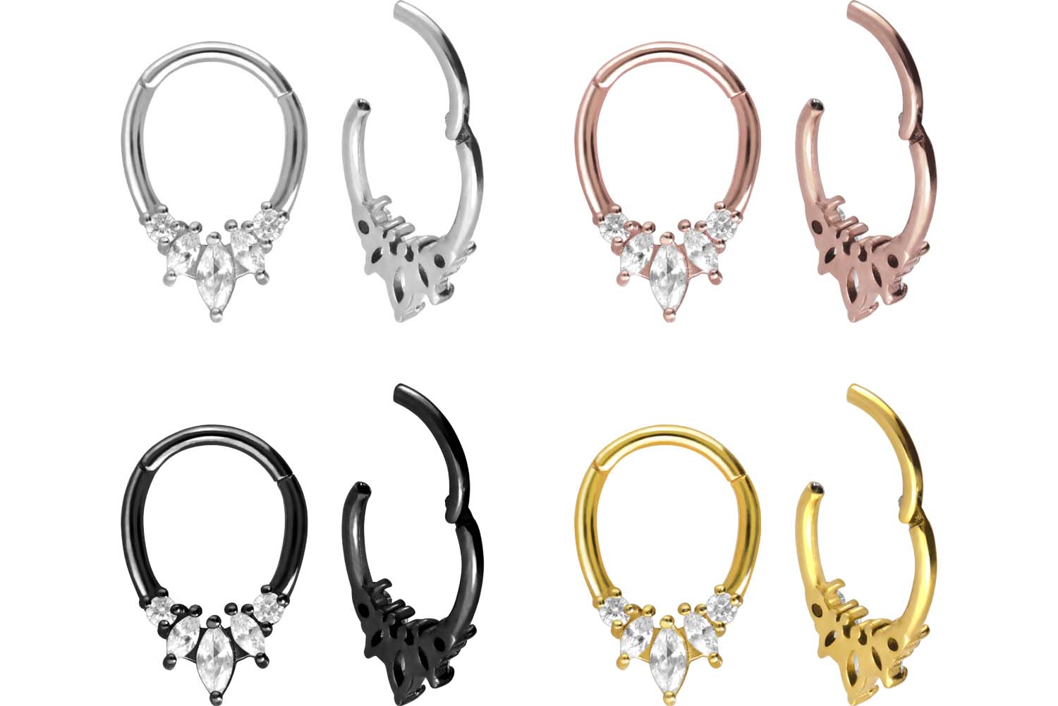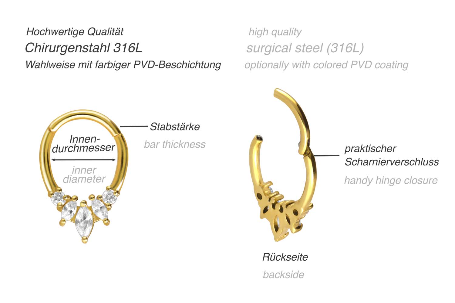 Chirurgenstahl 316L - Segmentring Clicker Tropfen + 5 eingefasste Kristall