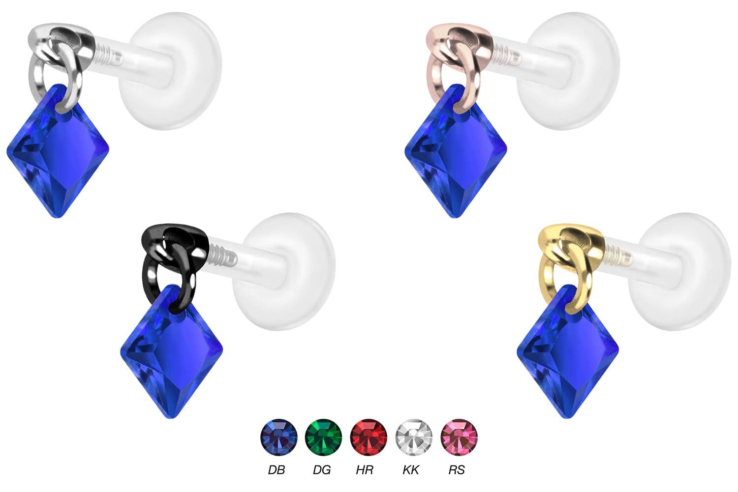 Dieses einzigartige Labret ist aus hochwertigem PTFE gefertigt, das ebenfalls unter dem Handelsnamen Teflon bekannt ist. Nur der Schraubaufsatz mit Außengewinde in Form eines funkelnden Quadrats wurde anstelle dessen aus Titan gefertigt. Beide Materialien verfügen neben ihrer exzellenten Qualität auch über weitere nützliche Eigenschaften wie etwa besonders gute Hautveträglichkeit und Beständigkeit. PTFE betreffend kommen Flexibilität und Anpassungsfähigkeit hinzu. Letztere macht sich im Falle dieses Artikels dadurch bemerkbar, dass sich der Stab je nach Belieben mit einer gewöhnlichen Haushaltsschere kürzen lässt. Anschließend kann mithilfe des Aufsatzes ein neues Gewinde eingedreht werden, sodass weiterhin ein optimaler Halt gewährleistet wird. Zu den Vorzügen von Titan gehört Farbechtheit, die auch bei den farbigen Varianten mit PVD-Beschichtung gewährleistet wird. Das Labret hat eine Stabstärke von entweder 1,2 oder 1,6 mm und ist in den unten aufgeführten Stablängen erhältlich. Darüber hinaus kann sein 0,9 mm Innengewinde nach Belieben mit all unseren anderen Schraubaufsätzen mit entsprechendem Außengewinde kombiniert werden.