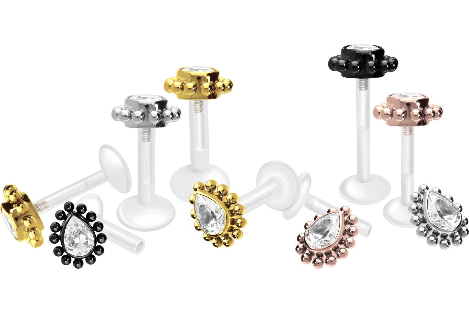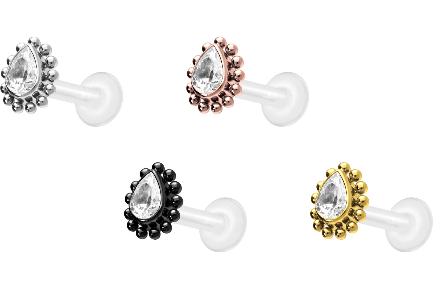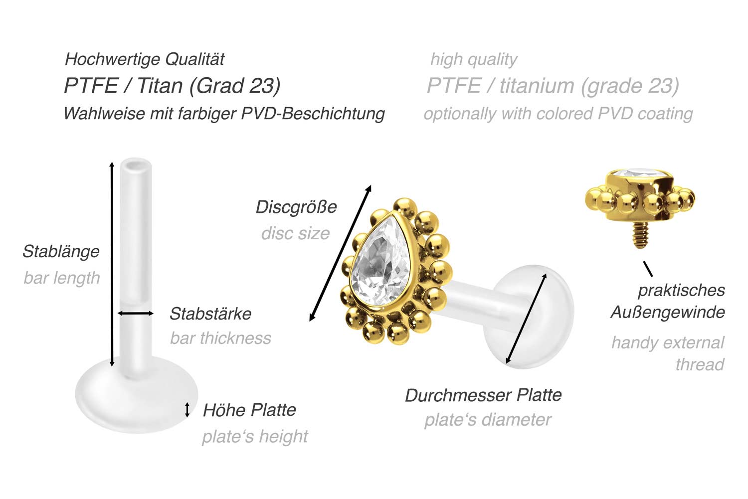 PTFE Labret mit Innengewinde + Titan-Aufsatz KRISTALLTROPFEN + KUGELN
