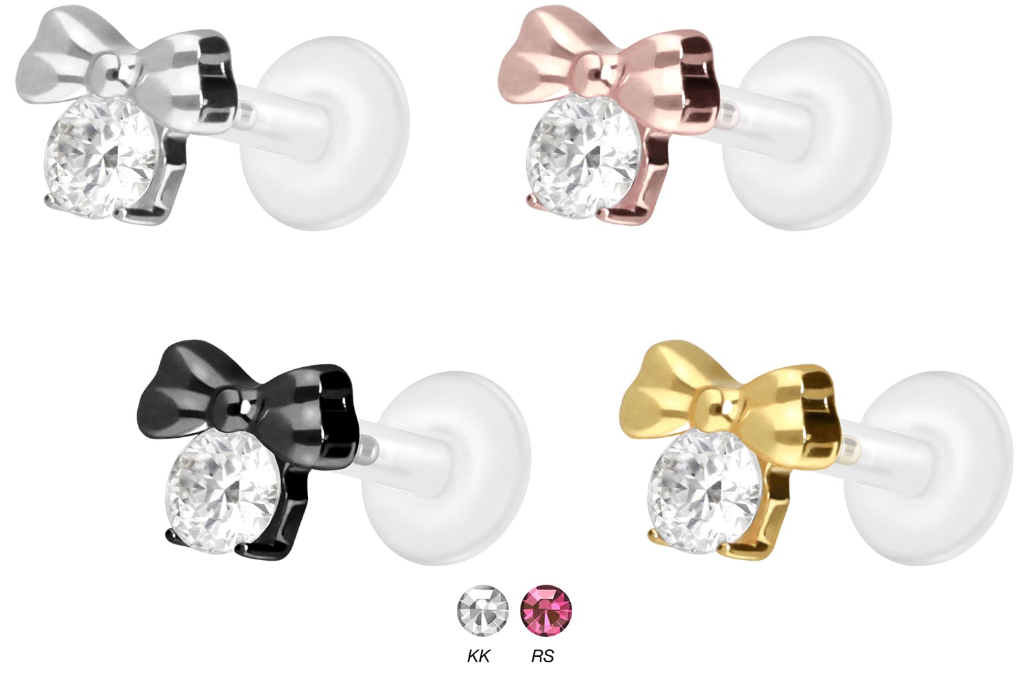 PTFE - Labret mit Innengewinde + Titan-Aufsatz Schleife + Kristall
