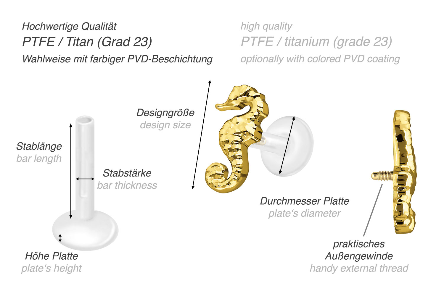 PTFE Labret mit Innengewinde + Titan-Aufsatz SEEPFERDCHEN