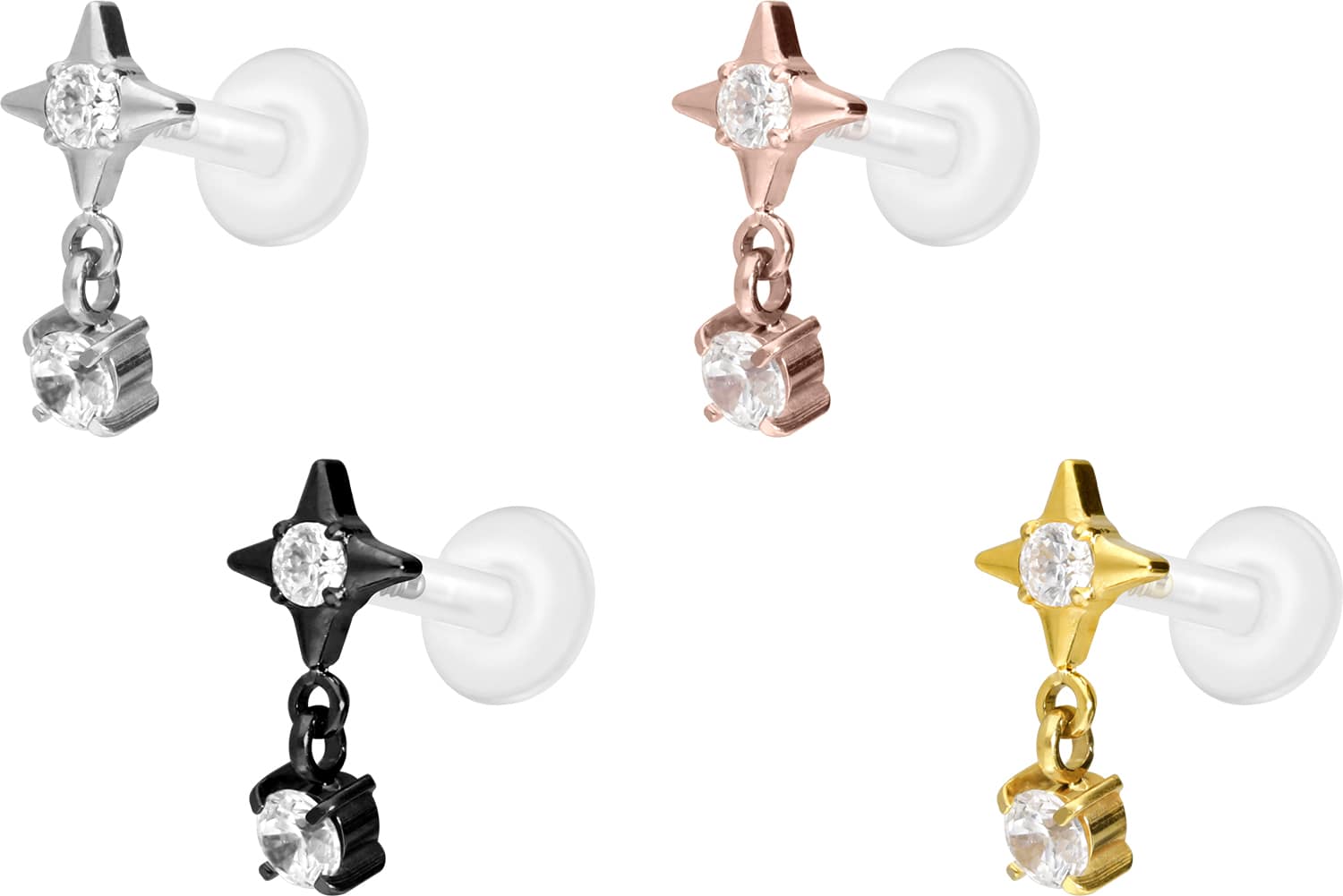 PTFE - Labret mit Innengewinde + Titan-Aufsatz Stern + Kristall