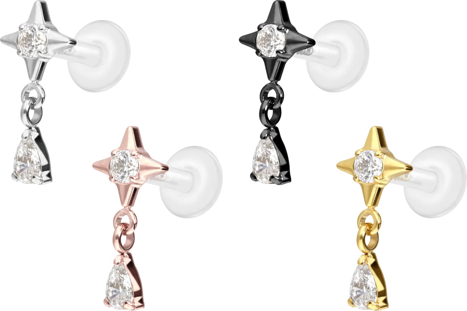 PTFE - Labret mit Innengewinde + Titan-Aufsatz Stern + Kristalltropfen
