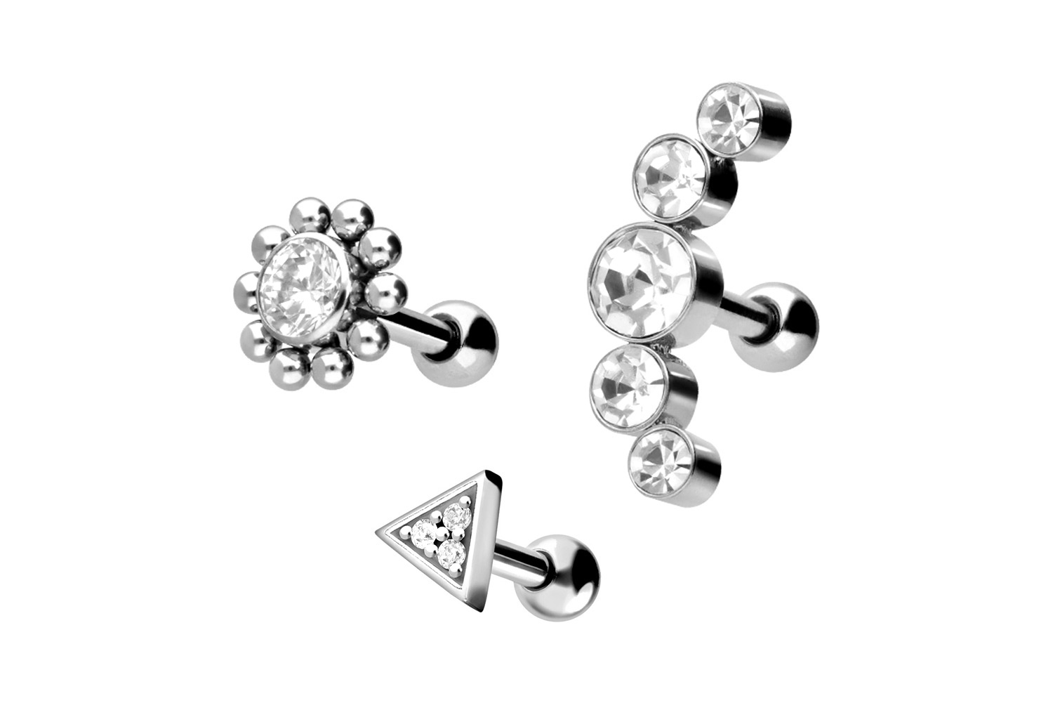PVD-Beschichtung überzogen, die durch die Hochglanzpolierung zusätzlich veredelt wird. Dank der drei verschiedenen Designs lässt sich für jeden Anlass der passende Ohrschmuck finden. Die Piercings haben eine Stabstärke von 1,2 mm und
