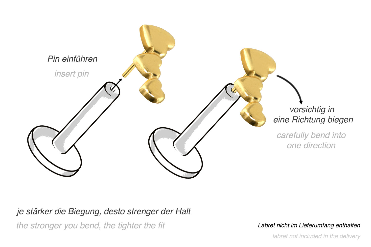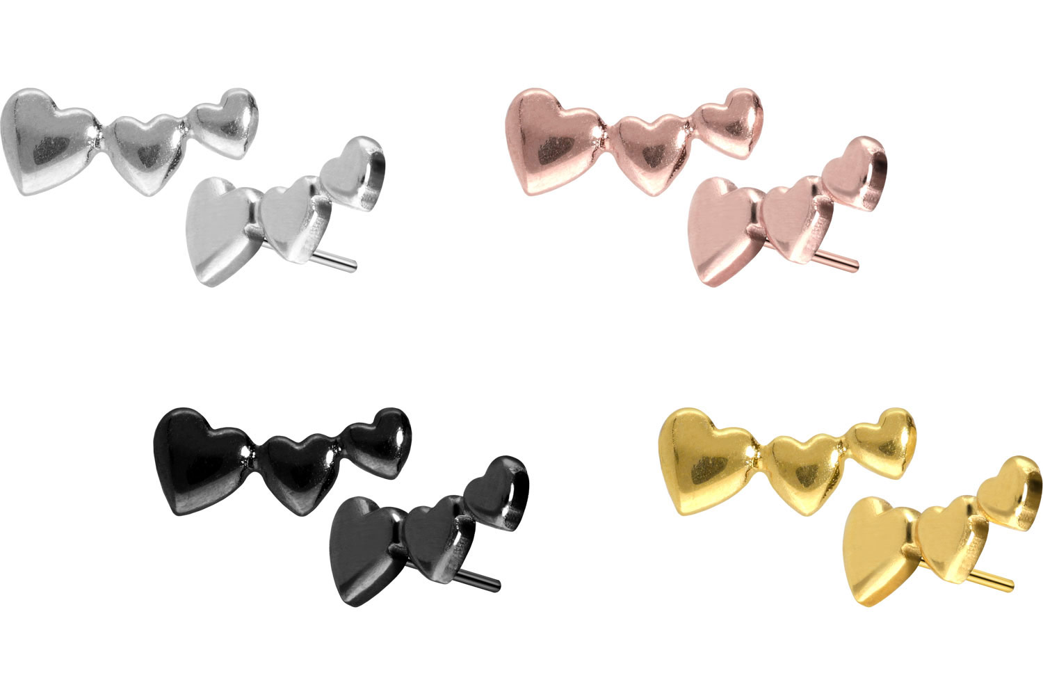 Dieser einzigartige Push Pin Aufsatz in Form von drei Herzen wurde speziell für unsere Push Fit Piercings entwickelt und besteht aus hochwertigem Titan, das sich unter anderem