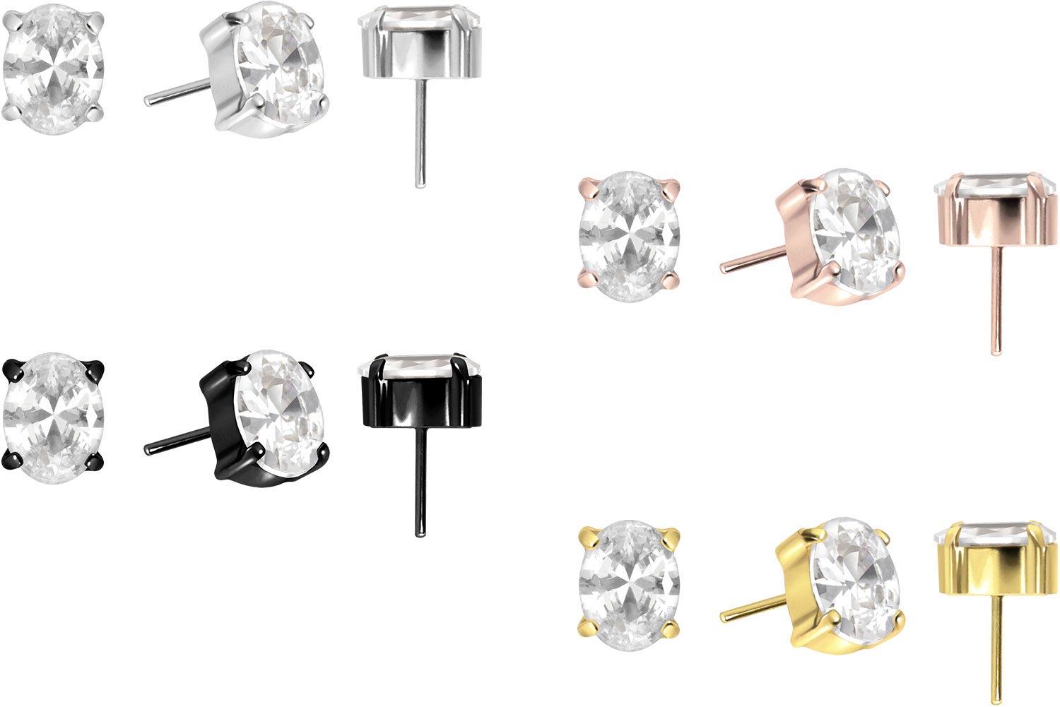 Dieser einzigartige Push Pin Aufsatz in Form eines funkelnden Kristallovals mit Fassungen wurde speziell für unsere Push Fit Piercings entwickelt und besteht aus hochwertigem Titan, das sich unter anderem