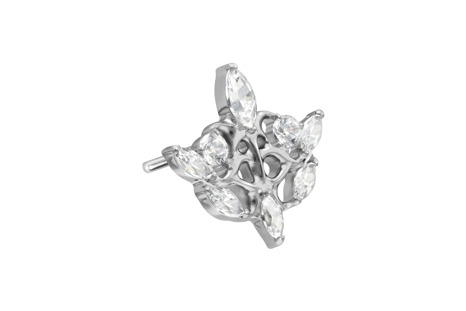 Dieser einzigartige Push Pin Aufsatz in Form eines gotischen Designs wurde speziell für unsere Push Fit Piercings entwickelt und besteht aus hochwertigem Titan, das sich unter anderem durch gute Hautverträglichkeit und hohe Beständigkeit auszeichnet. Ebenfalls zu seinen spezifischen Materialeigenschaften gehört Farbechtheit, die sowohl bei der silberfarbenen als auch bei der schwarzen, gold- und roségoldfarbenen Variante mit PVD-Beschichtung gewährleistet wird. Zum Einsetzen muss der Pin nach Belieben gebogen werden. Es ist zu beachten, dass ein festerer Halt gewährleistet ist, wenn der Pin ein bisschen stärker gebogen wird. Darüber hinaus ist der Push Pin des Aufsatzes mit all unseren Push Fit Produkten kompatibel, sodass sich vielfältige Kombinationsmöglichkeiten ergeben.