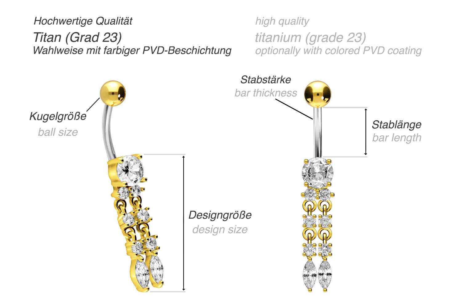 Titan - Bauchnabelpiercing mit 925er Silber-Design 2 Kristallketten
