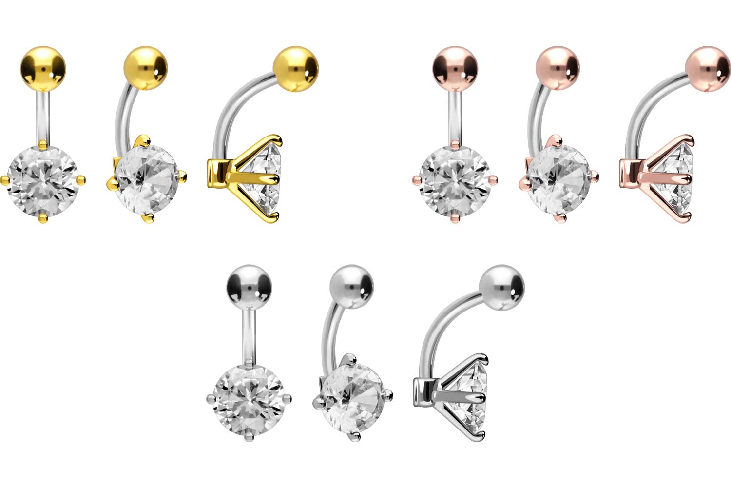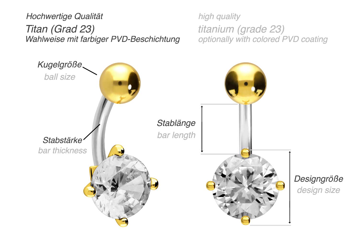 Titan - Bauchnabelpiercing mit 925er Silber-Design runder Kristall