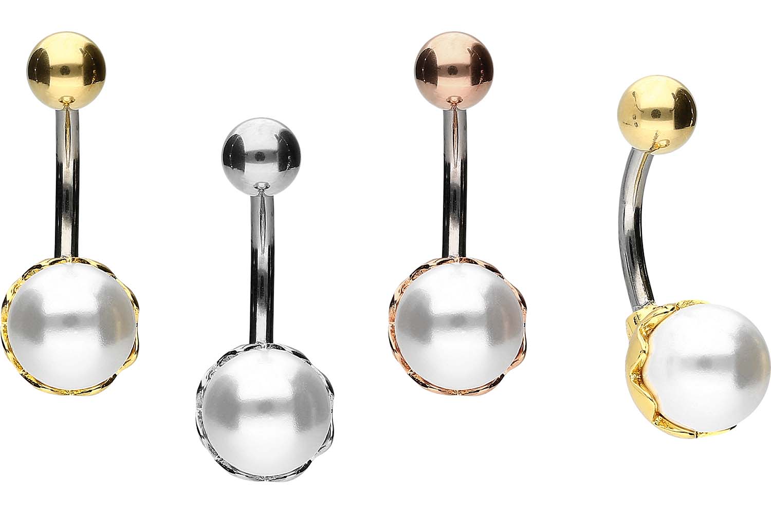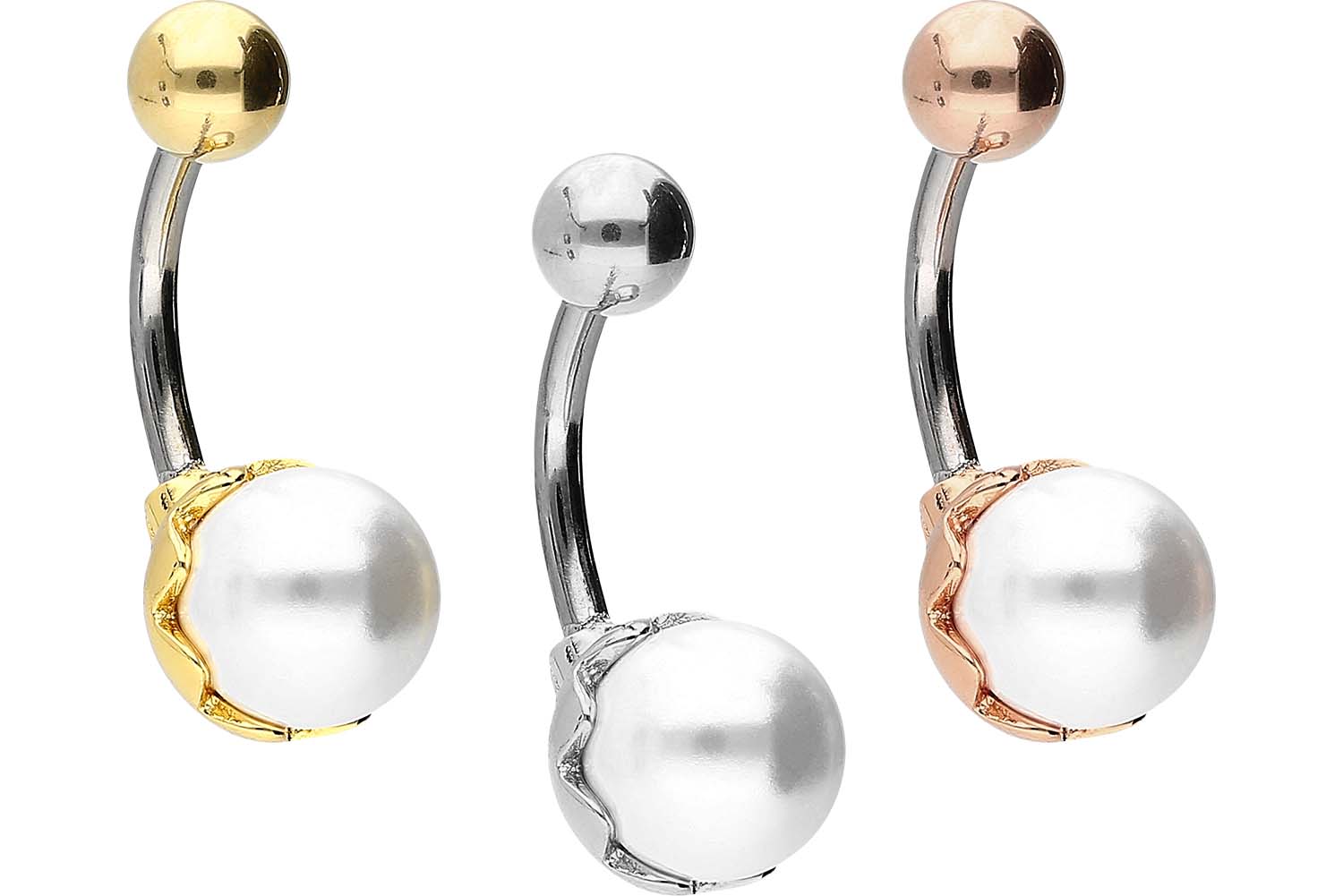 Titan - Bauchnabelpiercing mit 925er Silber-Design synthetische Perle